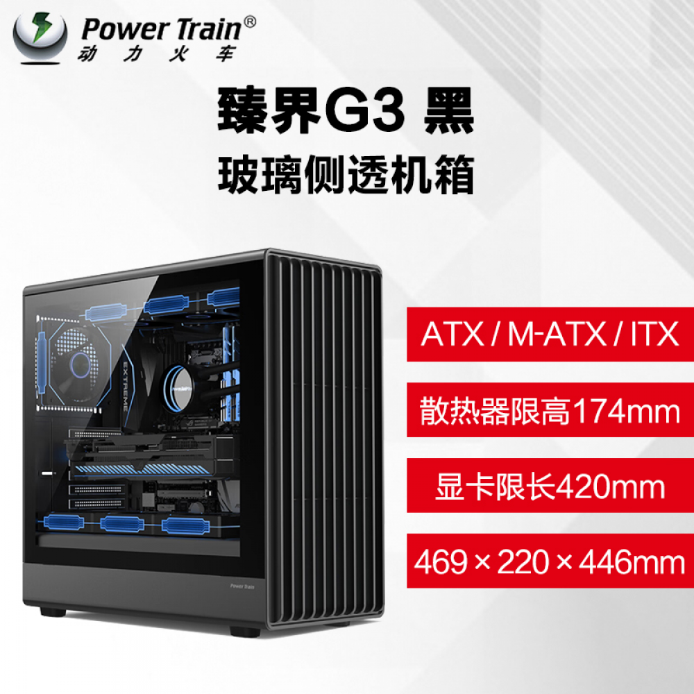 动力火车 臻界 G3 黑色 支持ATX主板 立式玻璃侧透 台式机机箱 南京仓发货 (22051)