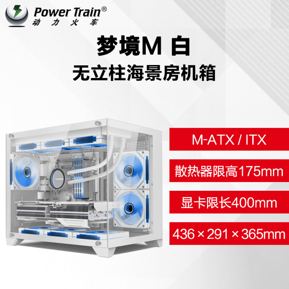 动力火车机箱 幻境 白色 海景房 M-ATX 240水冷 (21534)