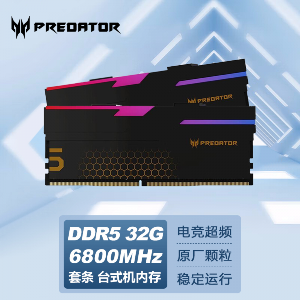 宏碁台式机内存 冰刃 DDR5 32G 16G*2套条 6400 黑色 (17831)