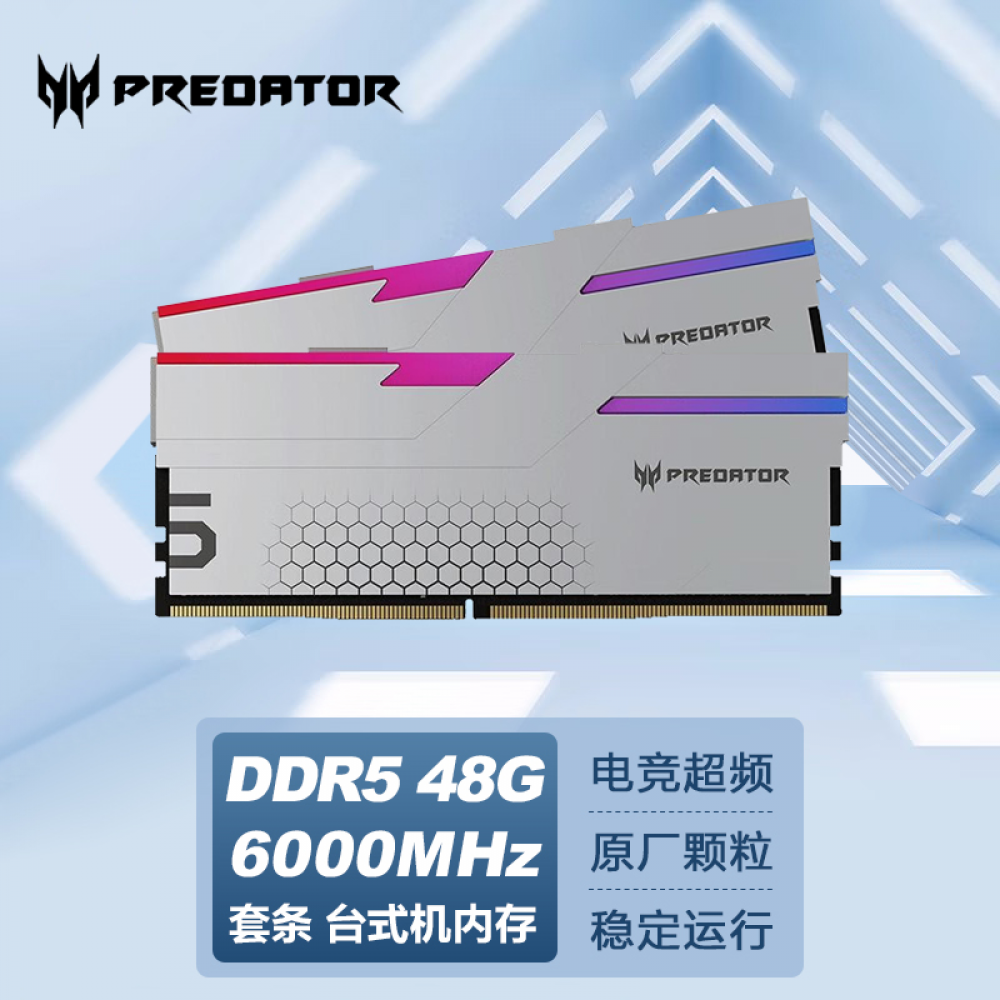 宏碁台式机内存 冰刃 DDR5 48G 6000 套条 白色 RGB灯条 C28 (21481)