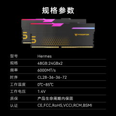 宏碁掠夺者 Hera 影锋 DDR5 32G 6400 套条 16G*2 黑色 C32 RGB灯条 (20166)