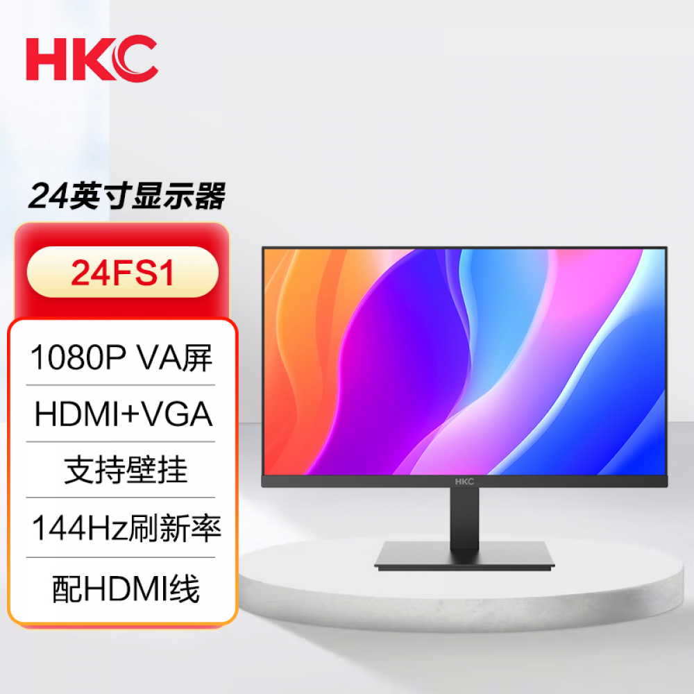 HKC显示器 24FS1 24寸/VA屏/144Hz/1080P高清 HDMI+VGA (22591)