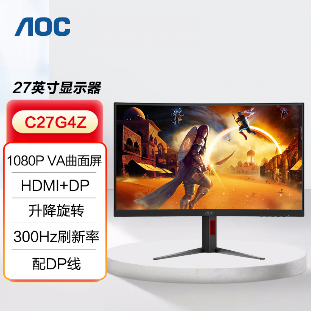 AOC显示器 C27G4Z 27寸/300HZ/VA屏/1080P 电竞曲面 HDMI+DP (22549)