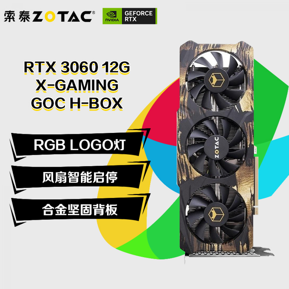 索泰显卡 RTX 3060 12G X-GAMING GOC H-BOX 三风扇/DP+HDMI (22170)