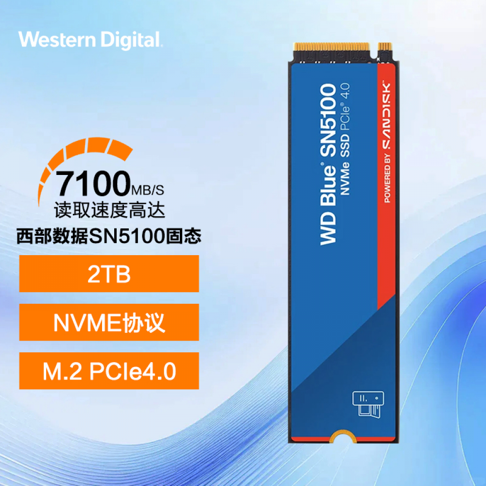 西部数据固态硬盘 SN5100 2T 蓝盘 NVMe M.2 PCle 4.0 (22306)