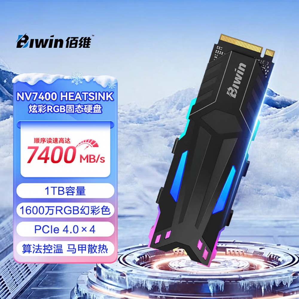 佰维固态硬盘 NV7400 HEATSINK 1T PCIe 4.0 炫彩版 (20904)