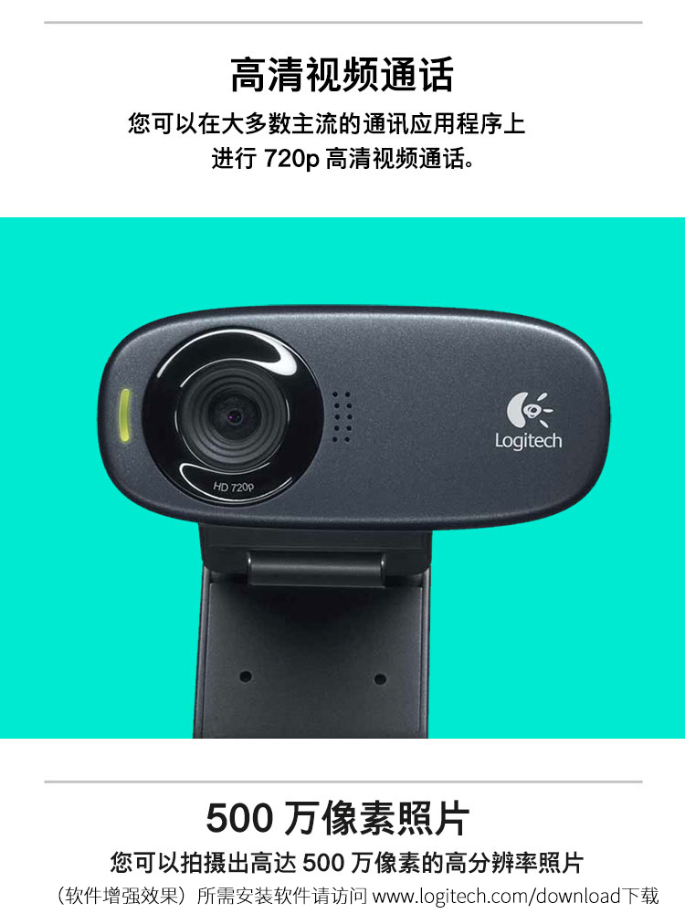 商品名称:罗技网络摄像头 C310 720高清版/内置麦克风/免驱 (10510)