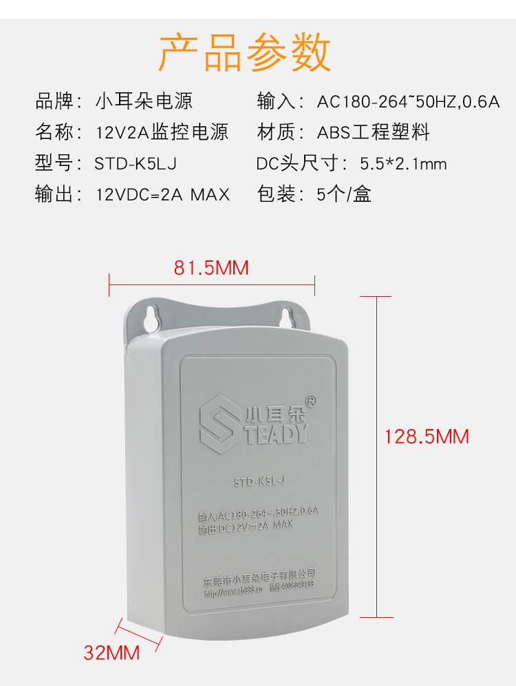商品名称:小耳朵 STD-K5L-J 户外电源适配器 (10869)