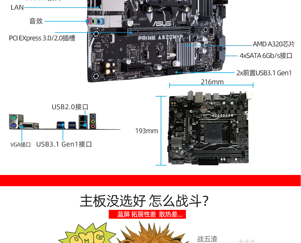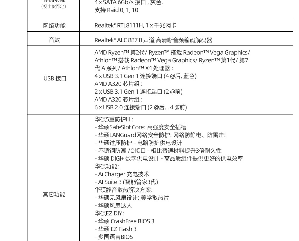 商品名称:华硕主板 PRIME A320M-F AM4/DDR4/VGA (11362)