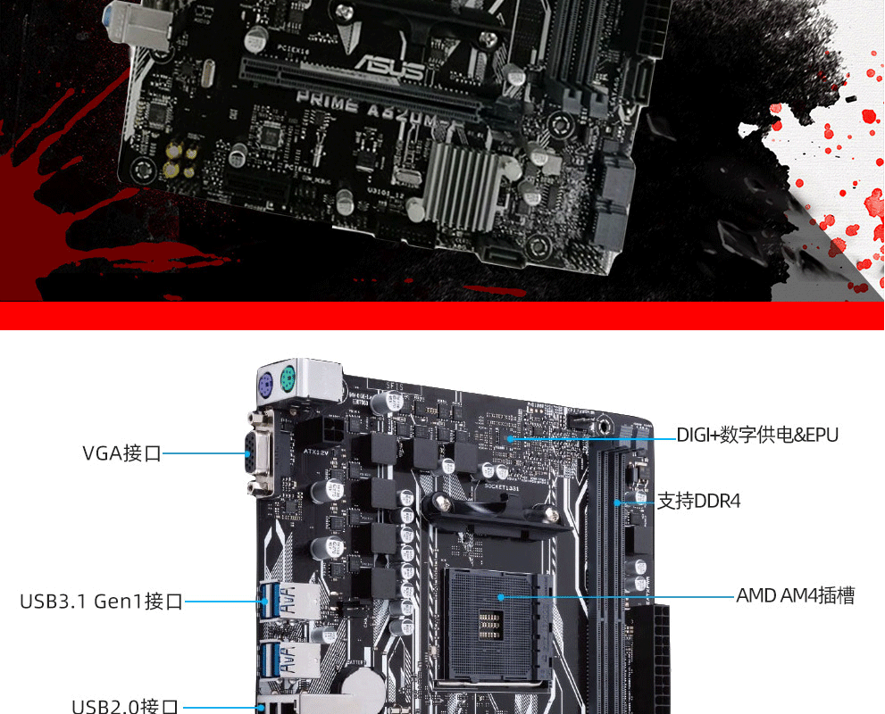 华硕主板 PRIME A320M-F AM4/DDR4/VGA (11362)