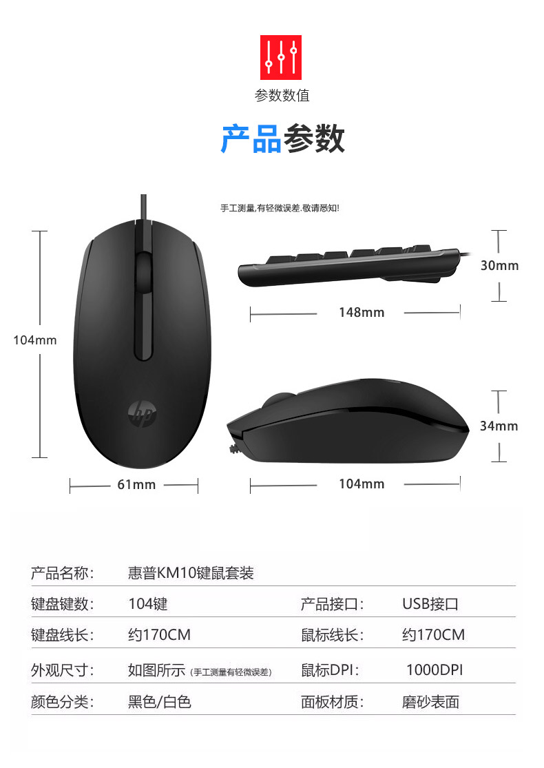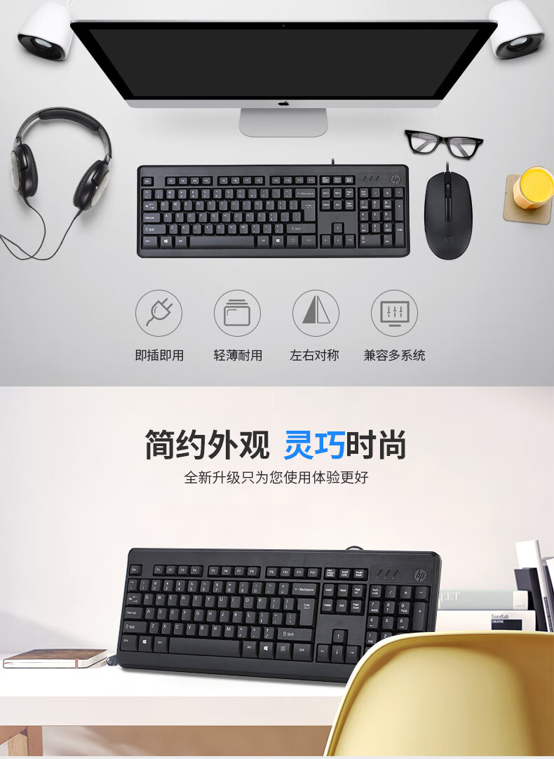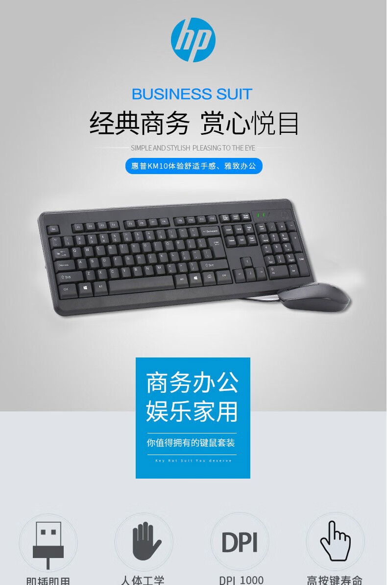 商品名称:HP惠普 KM10 有线键鼠套装/套件 黑色 U+U (5817)
