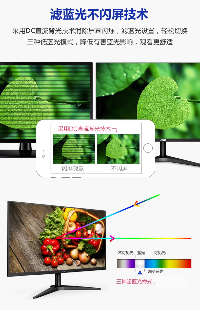 AOC显示器 22B1HMN VGA+HDMI 21.5寸 带壁挂孔(12296 )