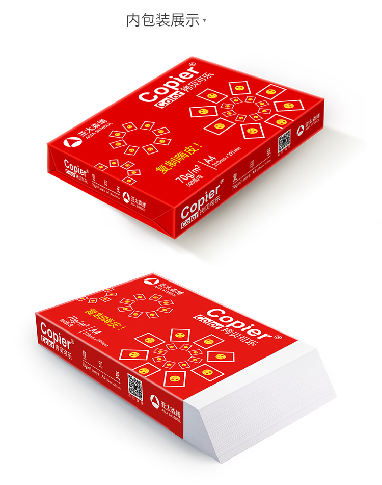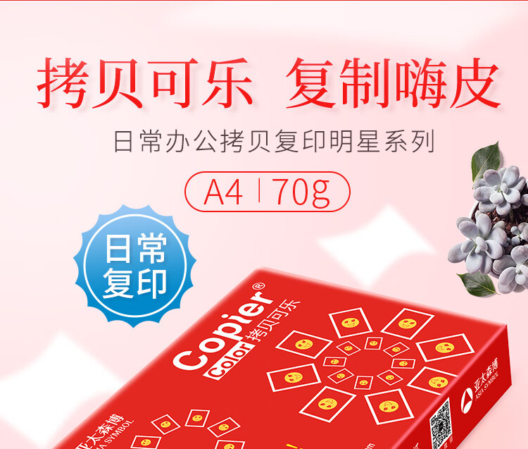 商品名称:亚太森博 红贝 70g A4复印纸 打印纸 500张/包 (7136)