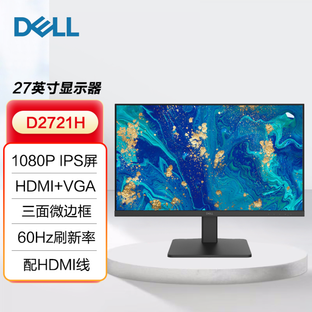 戴尔显示器 D2721H 27寸 VGA+HDMI 1080P高清 超窄边框显示器 (12837)