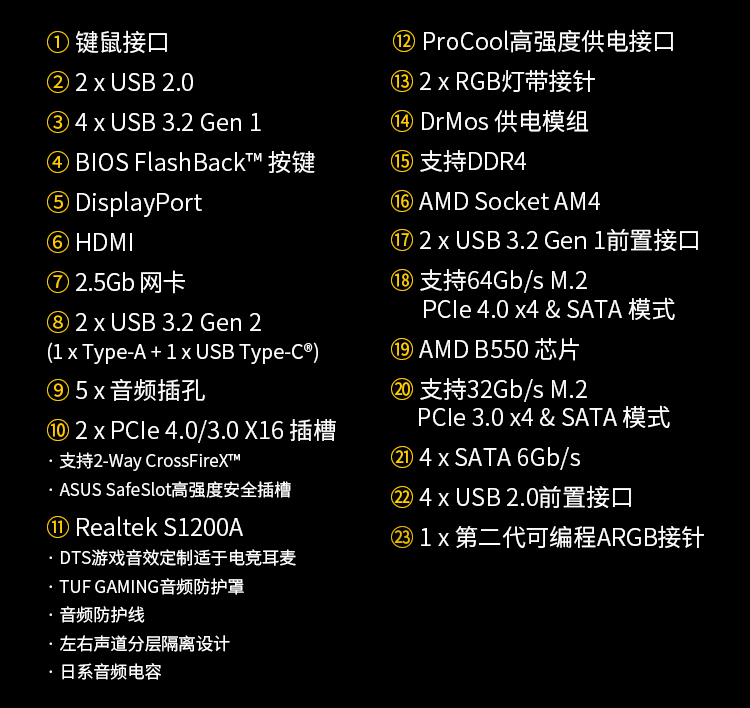 商品名称:华硕主板 TUF GAMING B550M-PLUS AM4/DP+HDMI/DDR4(12714)
