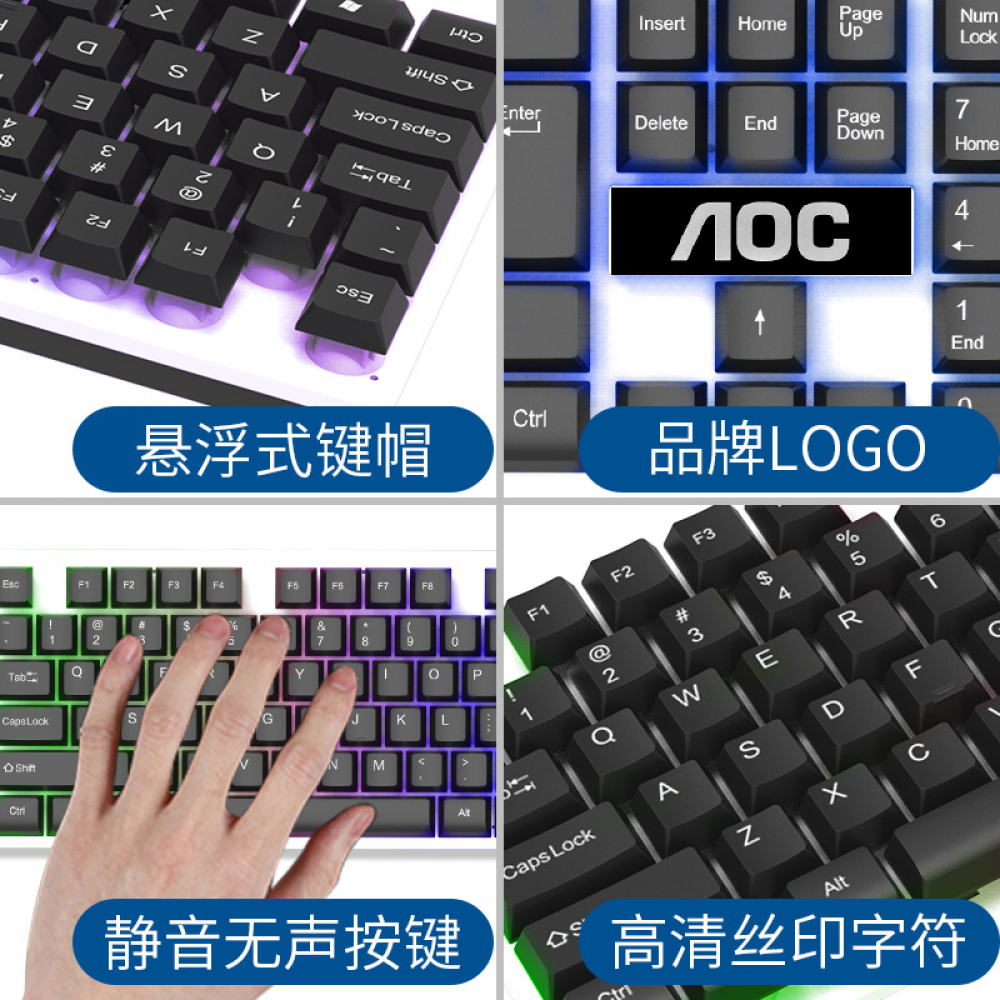AOC KM100 有线混光机械感 键鼠套装/套件 黑色 (U+U口) 12983