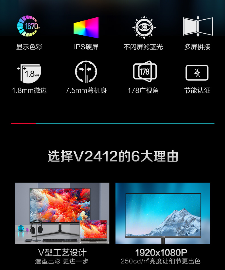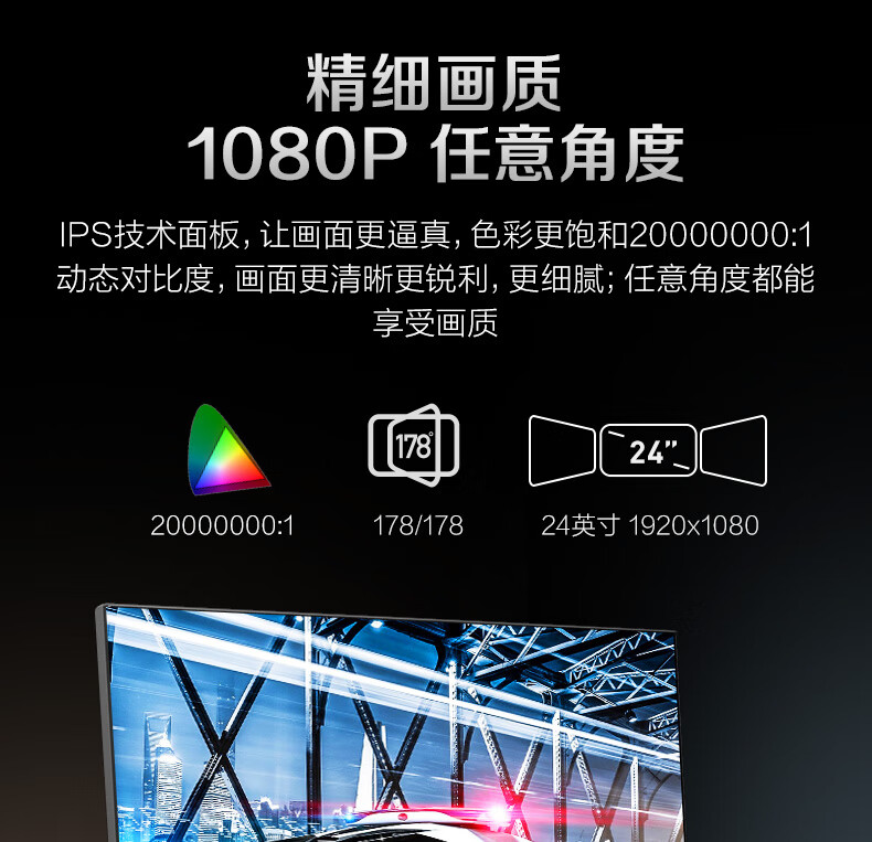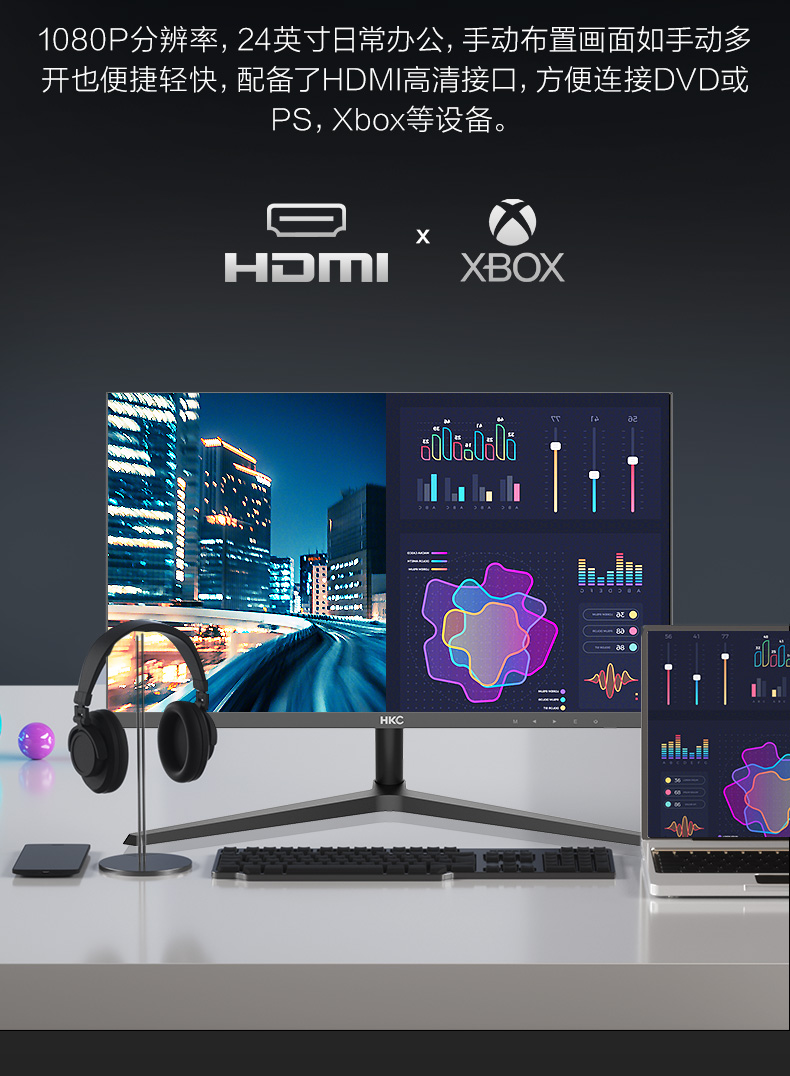 HKC显示器 V2412 直面 24寸IPS VGA+HDMI (13300)