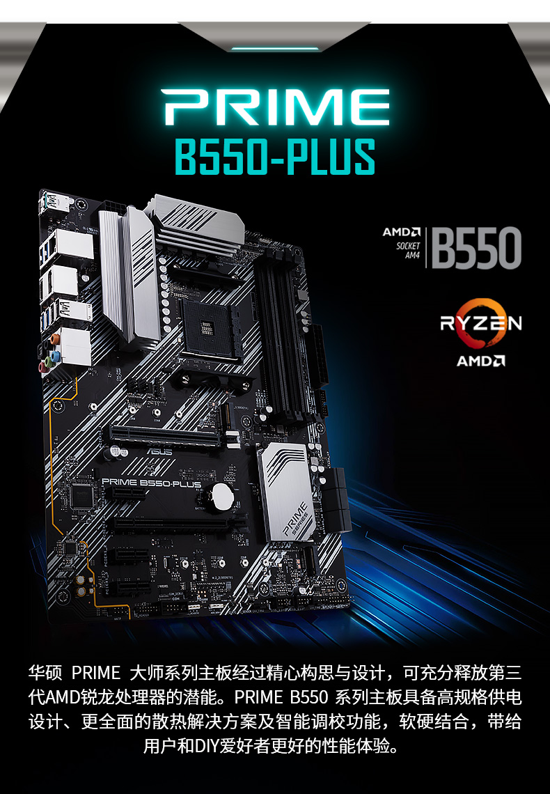 华硕主板 PRIME B550-PLUS AM4/DDR4/DP+HDMI(12569)