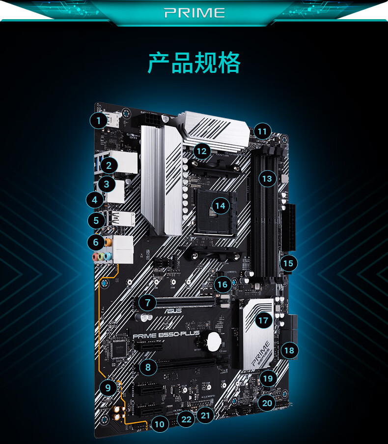 商品名称:华硕主板 PRIME B550-PLUS AM4/DDR4/DP+HDMI(12569)