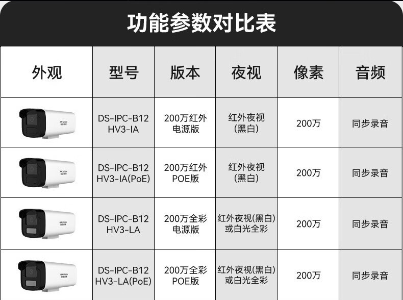 商品名称:海康 200万 枪机 摄像头 DS-IPC-B12HV3-IA 4MM 不带POE (12839)