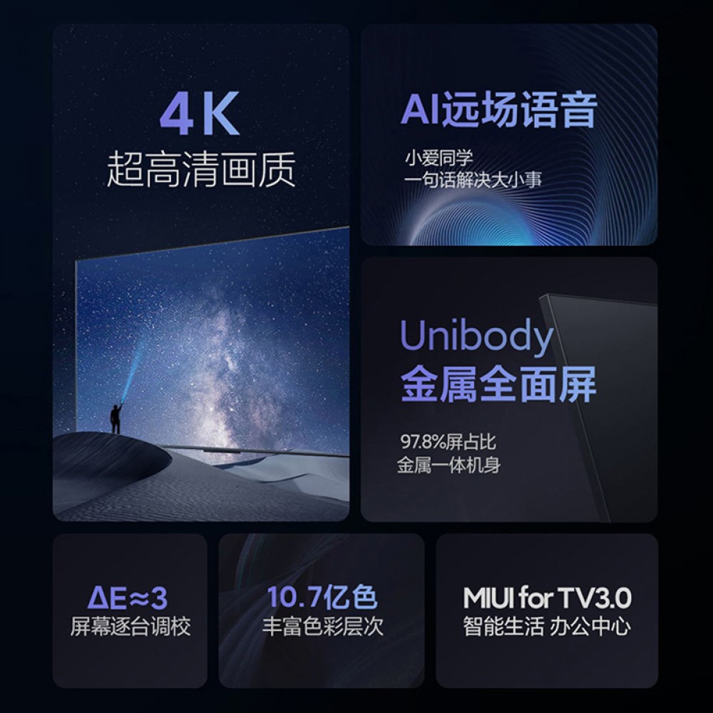 商品名称:小米电视机 EA75 75寸 金属全面屏 远场语音 逐台校准4K超高清 (14475)