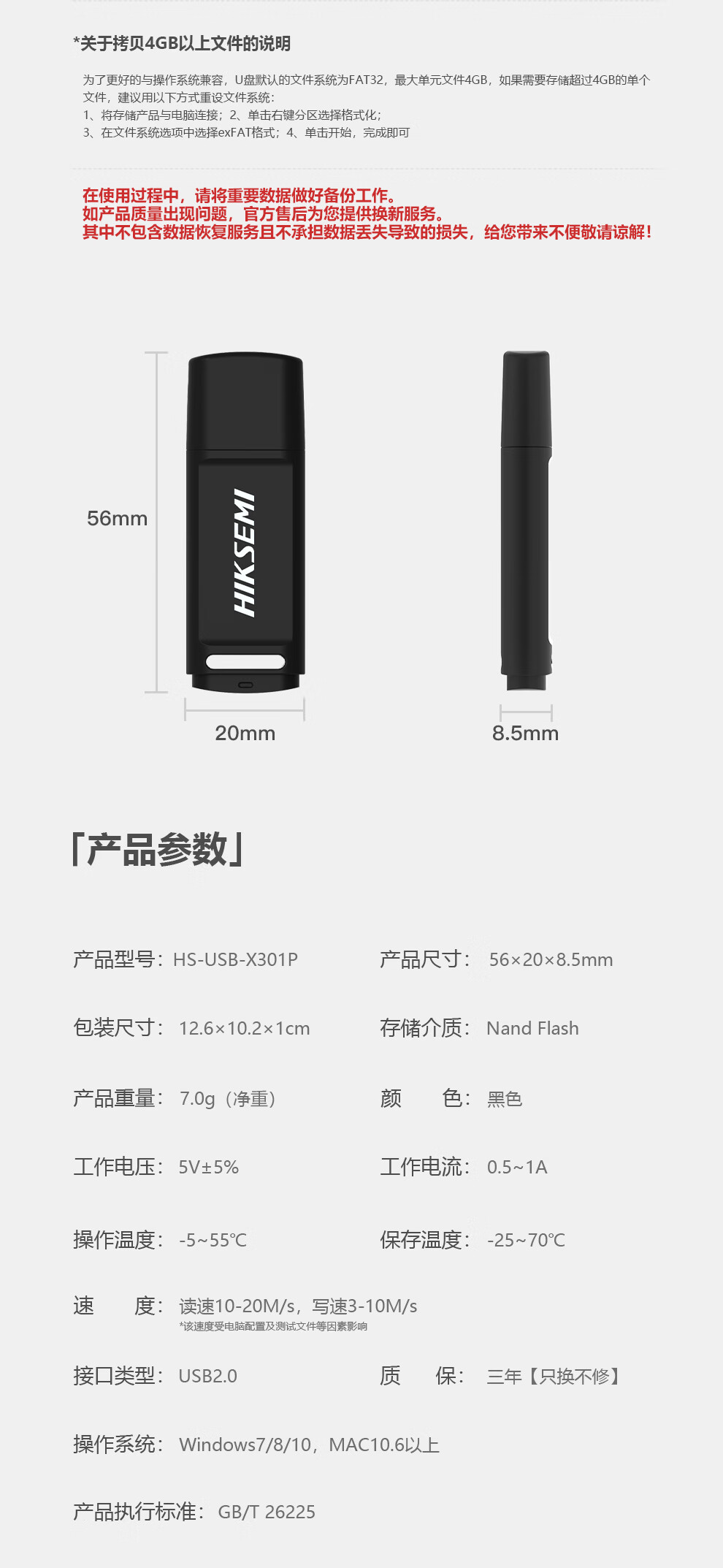 商品名称:海康威视 X301P 8GB USB2.0 U盘 黑色 招标U盘(14883)