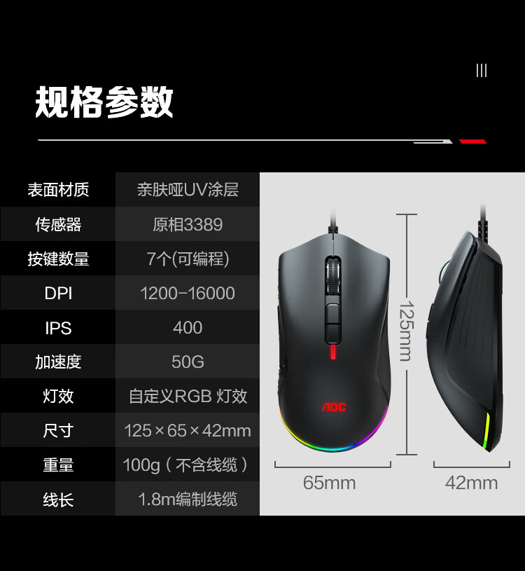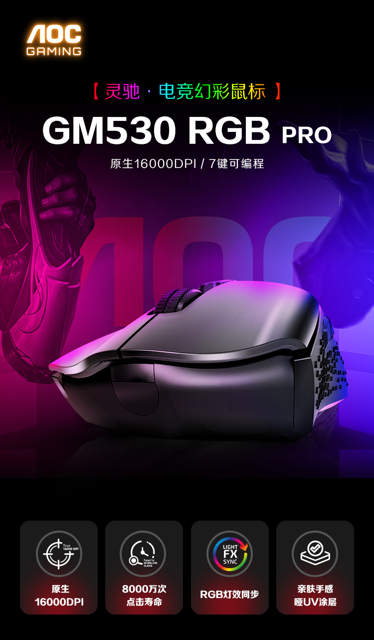 商品名称:AOC GM530灵驰 有线 电竞游戏 单鼠标 (14947)