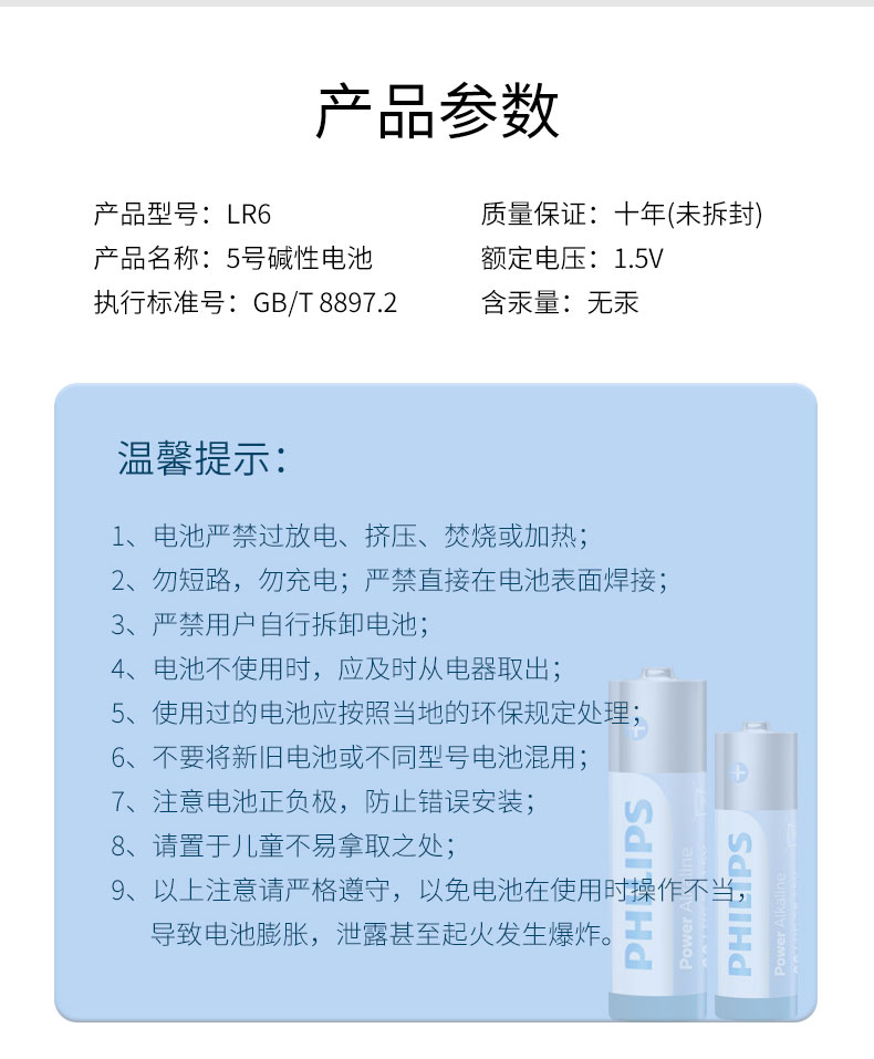 商品名称:飞利浦电池 5号碱性电池 *10节 (13999)