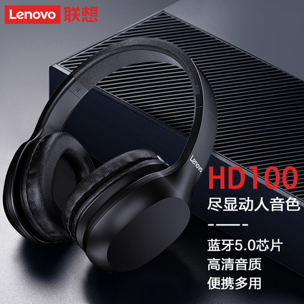 联想 HD100 头戴式立体声蓝牙 耳机/耳麦 黑 (14875)