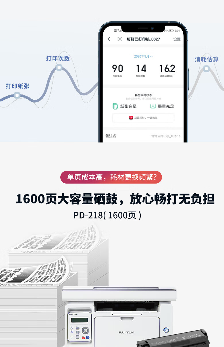 【奔图】黑白激光打印机 P2206W 青春版 (15308-D)