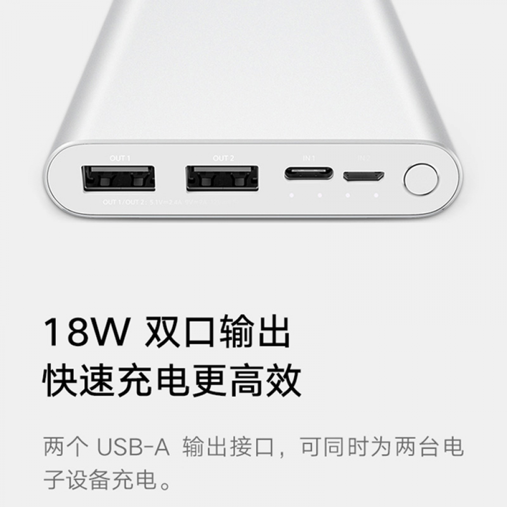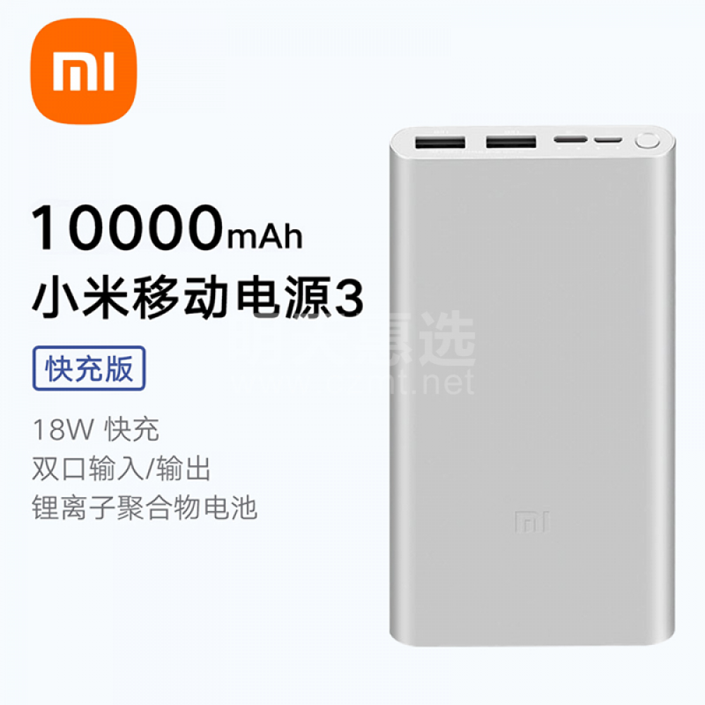 商品名称:小米 充电宝 移动电源3 10000毫安 快充 银色 (15100)