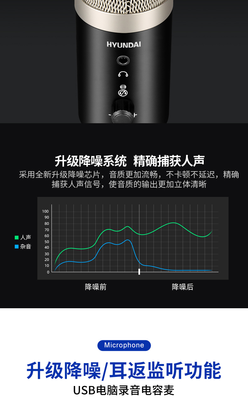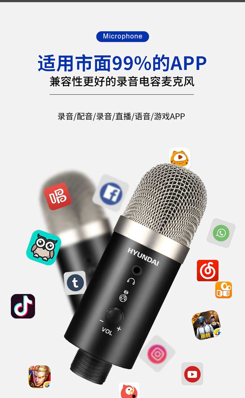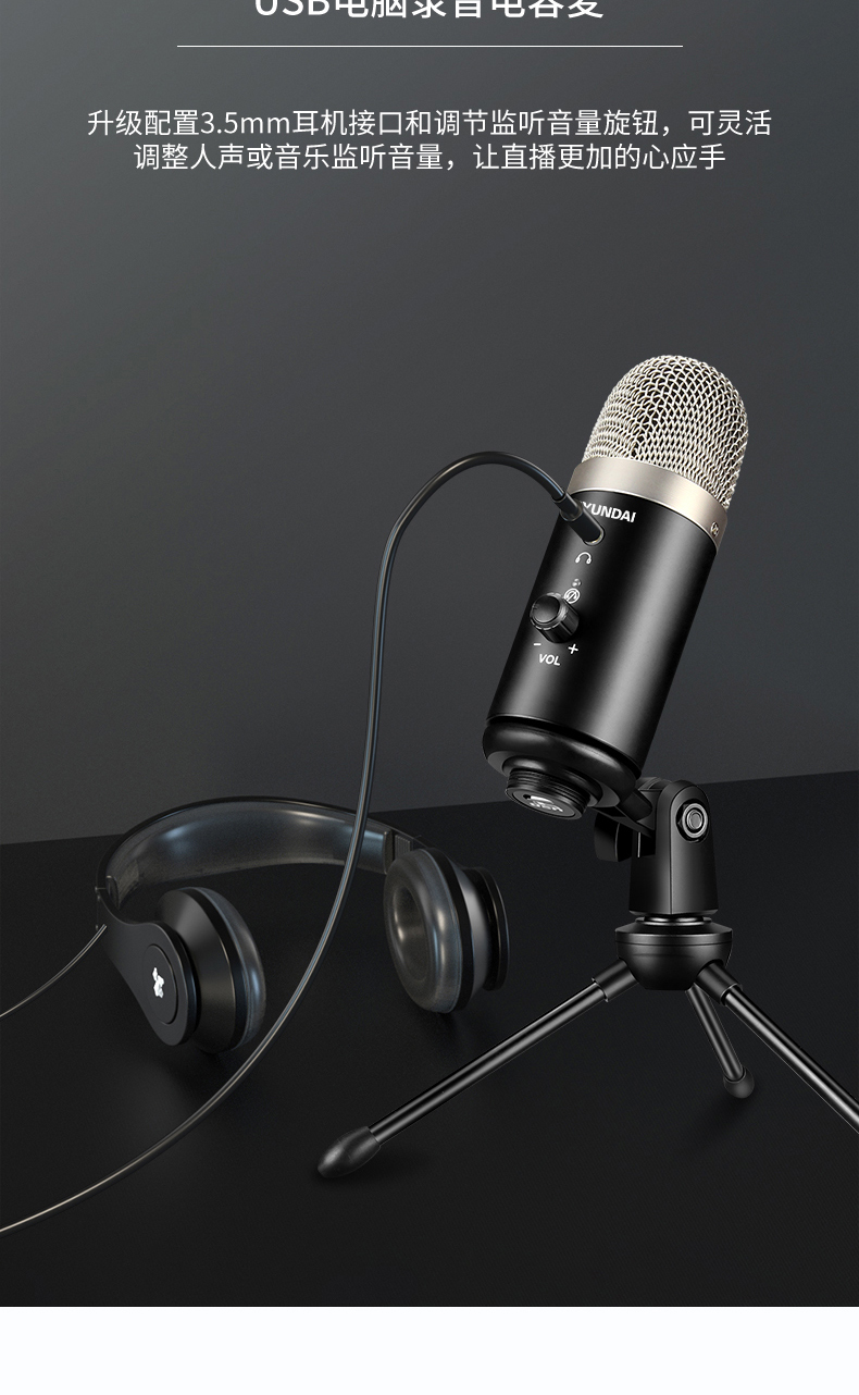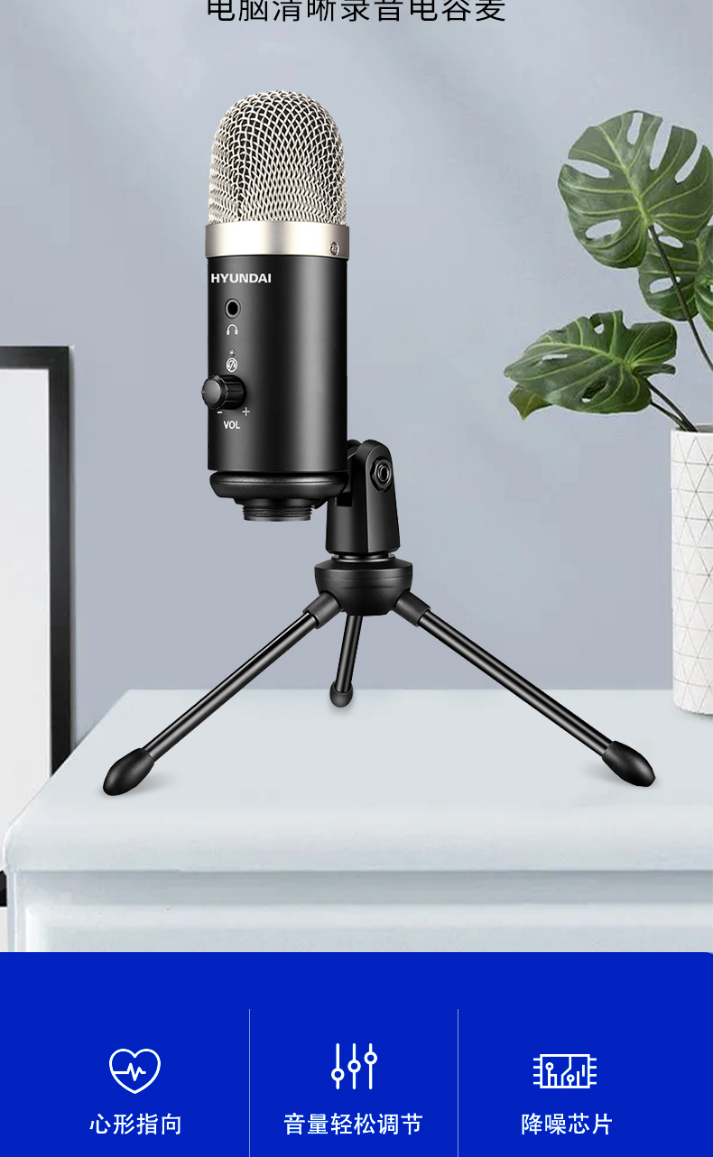 现代 HY-5I 有线单麦/话筒 麦克风 USB口 会议直播 手机K歌 游戏直播(15066)