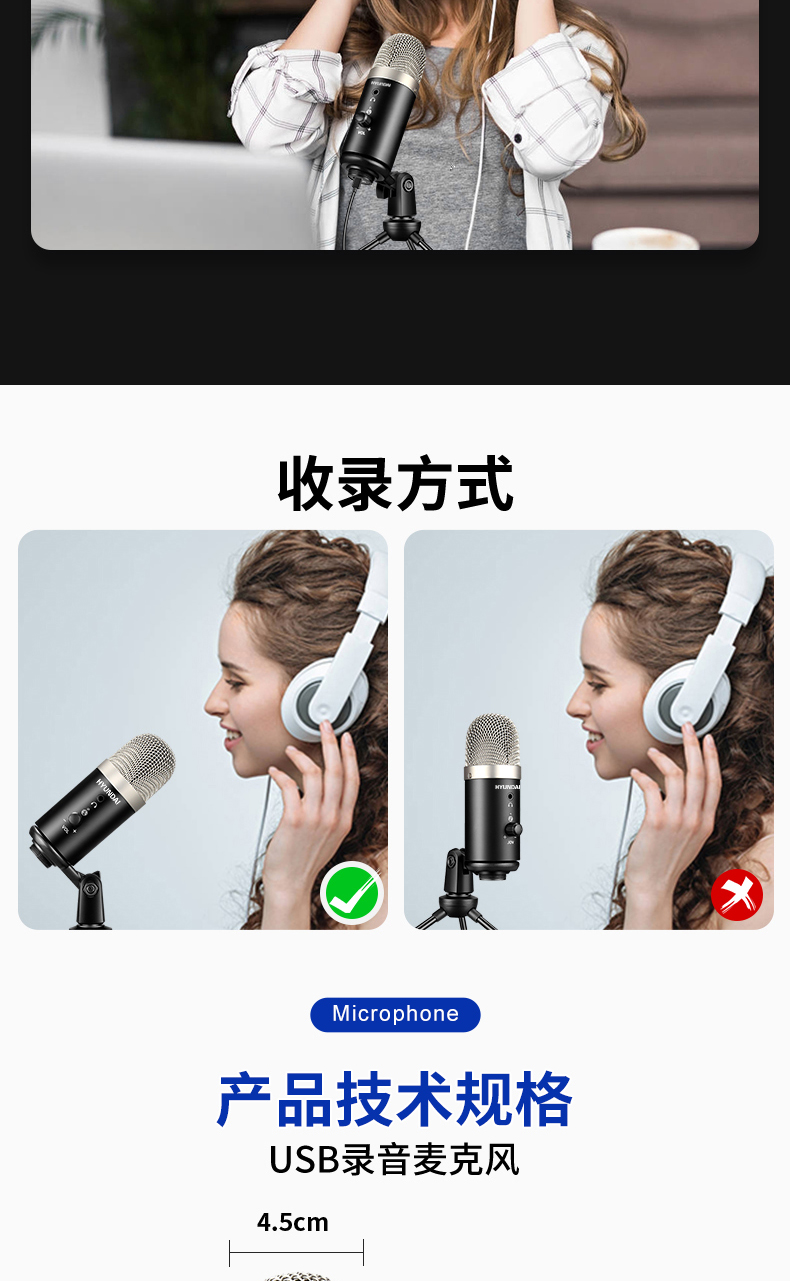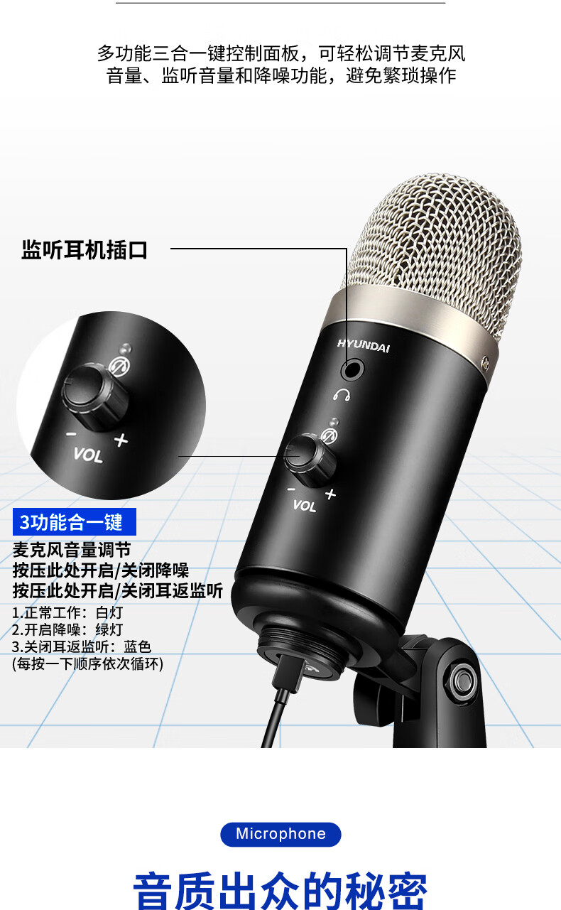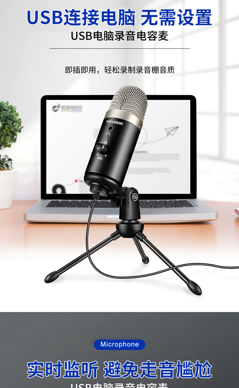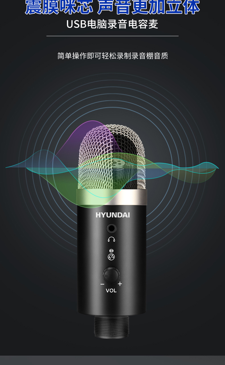 现代 HY-5I 有线单麦/话筒 麦克风 USB口 会议直播 手机K歌 游戏直播(15066)