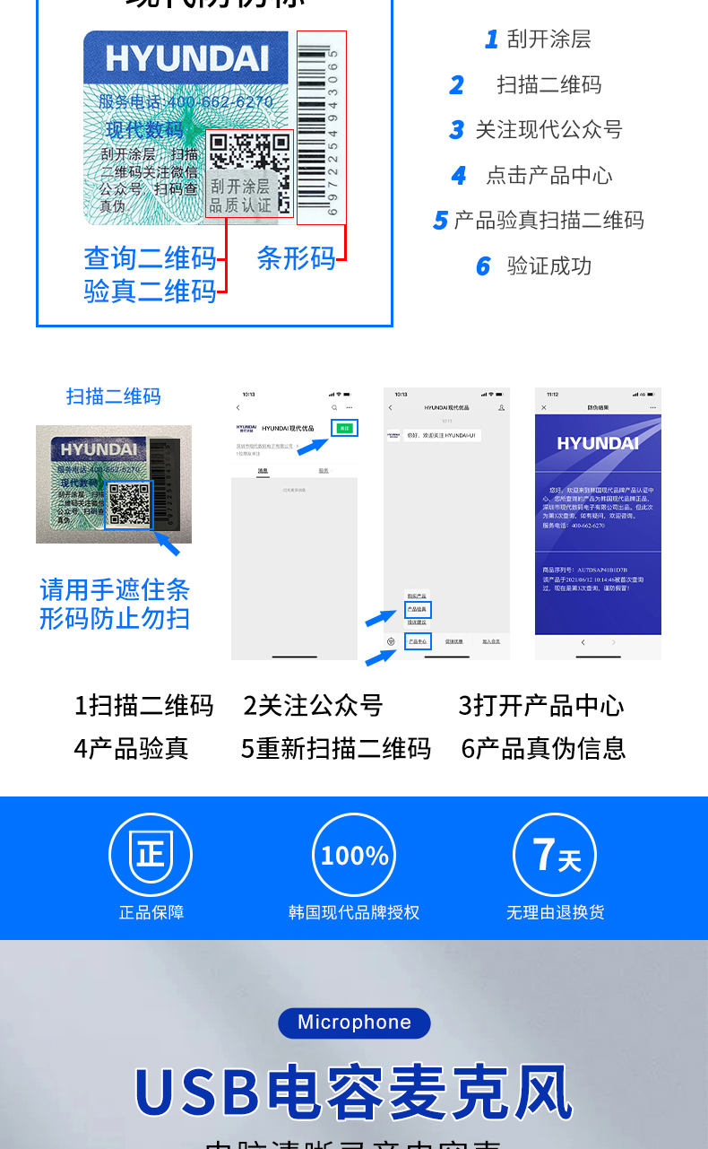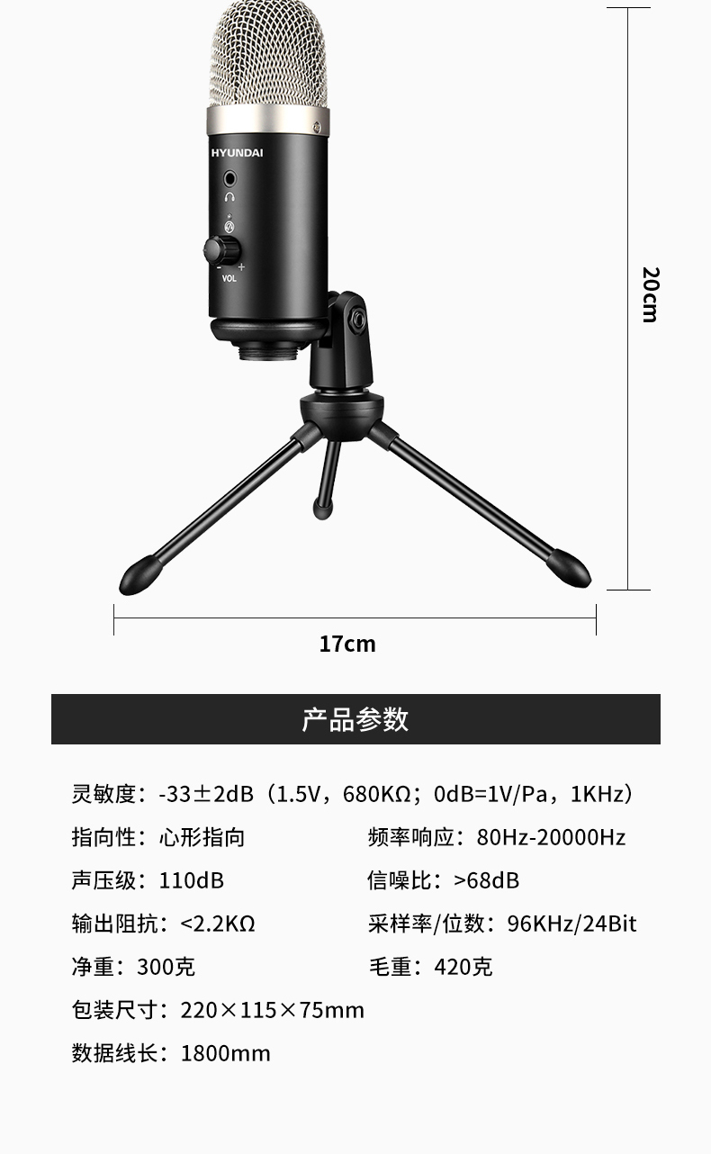 商品名称:现代 HY-5I 有线单麦/话筒 麦克风 USB口 会议直播 手机K歌 游戏直播(15066)