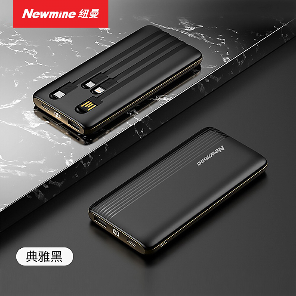 纽曼充电宝 10000毫安 AL01 黑色 自带线 数显容量 可上飞机 (15221)