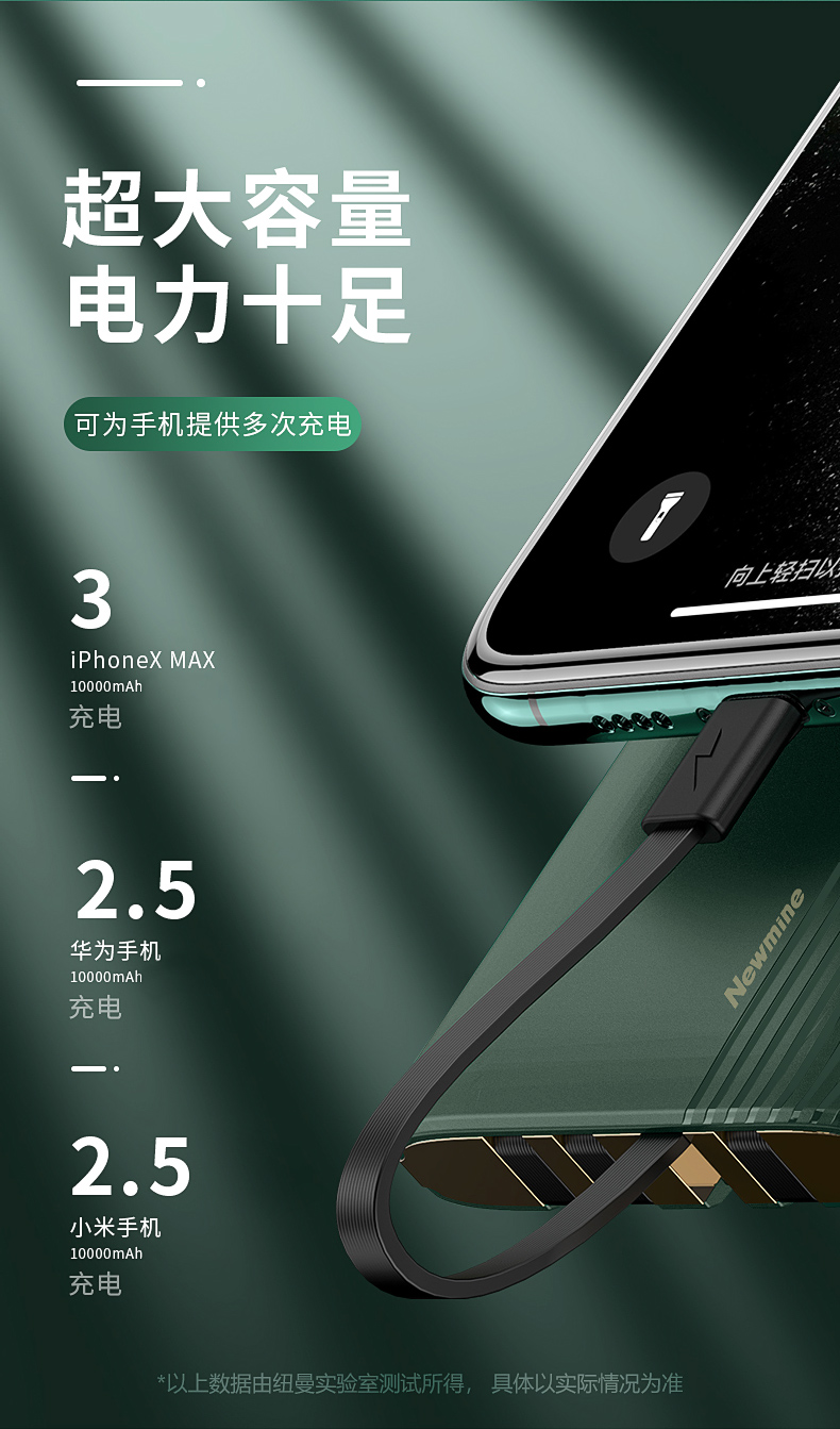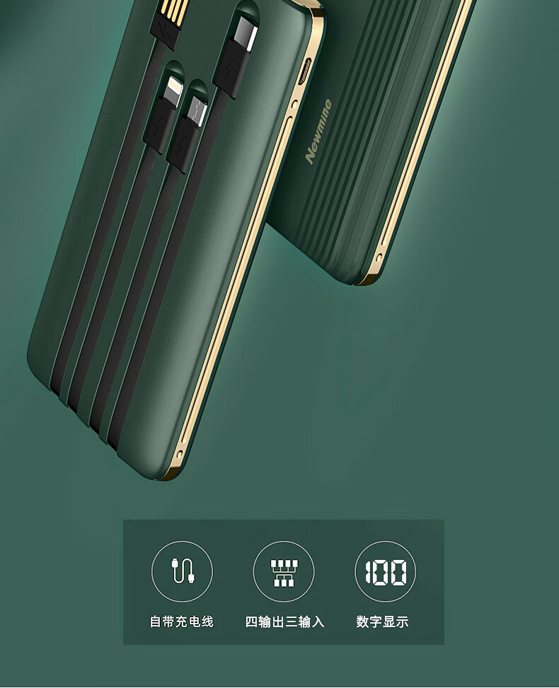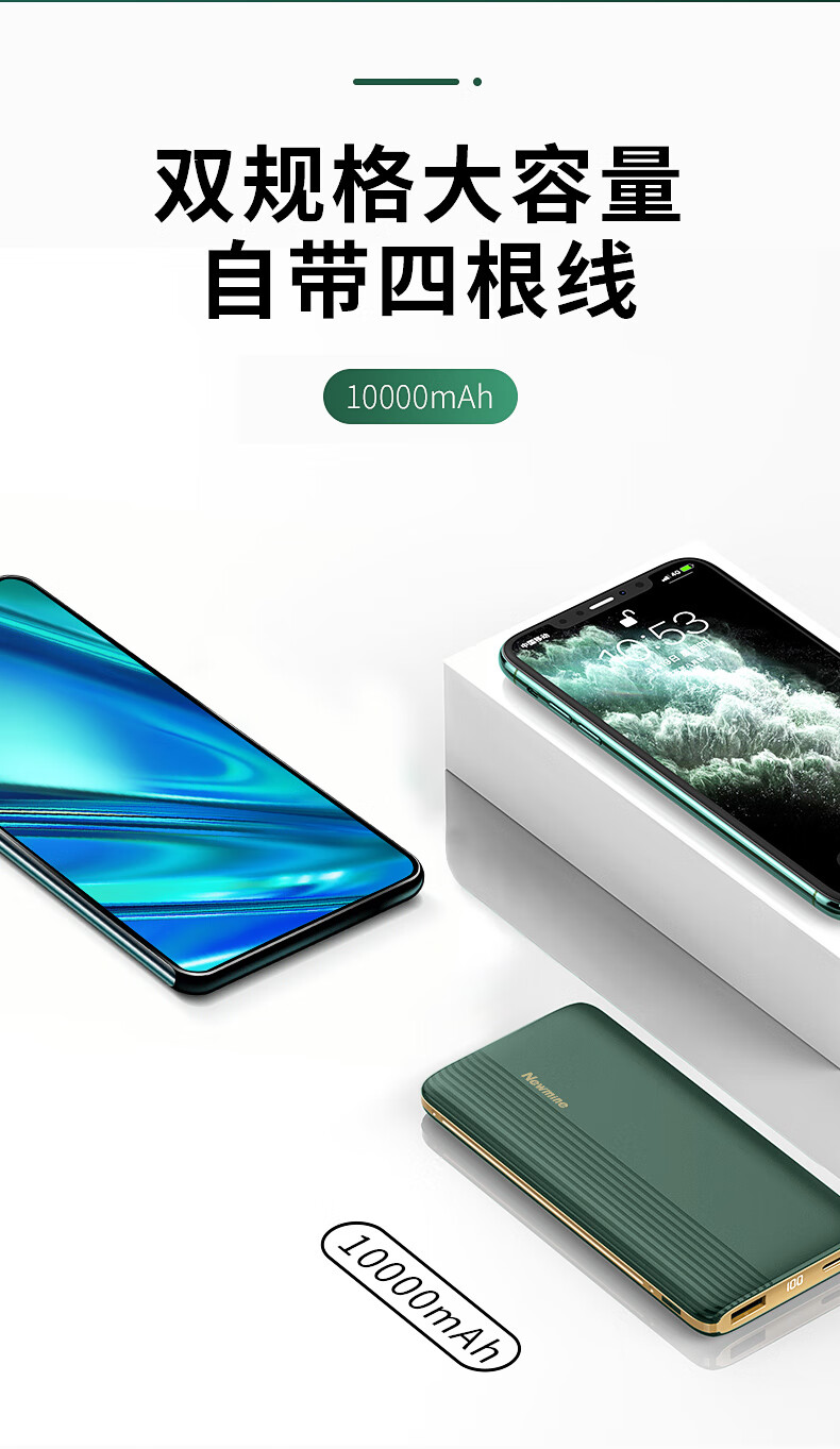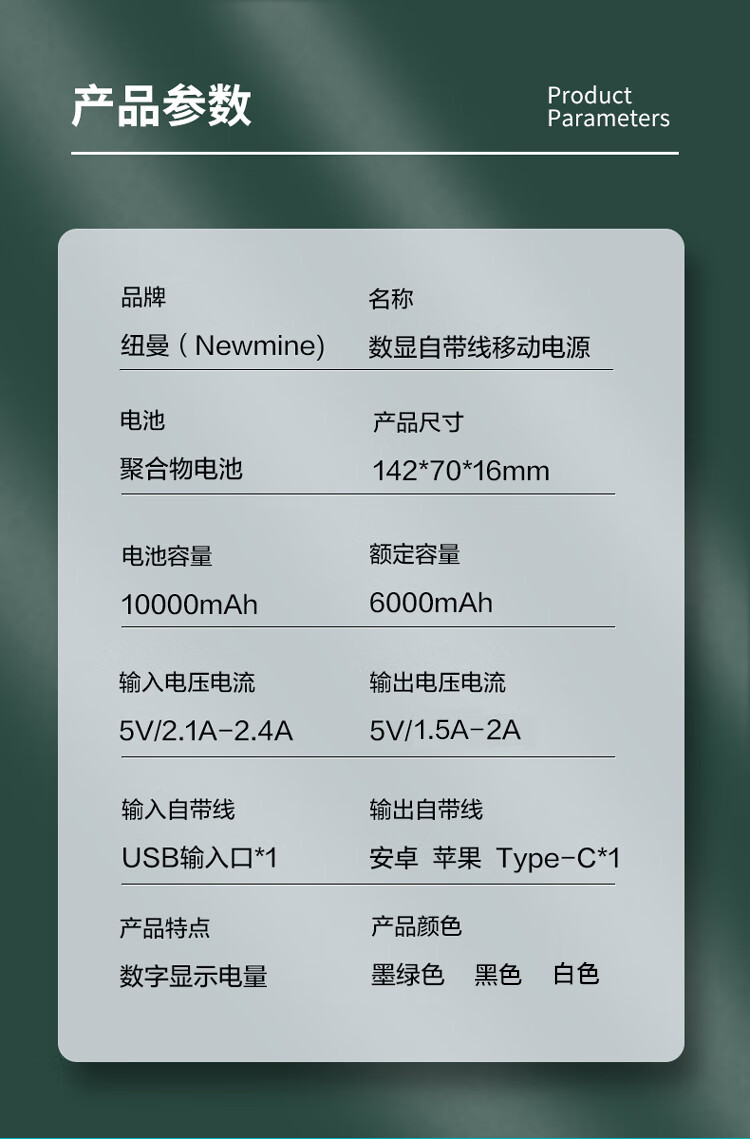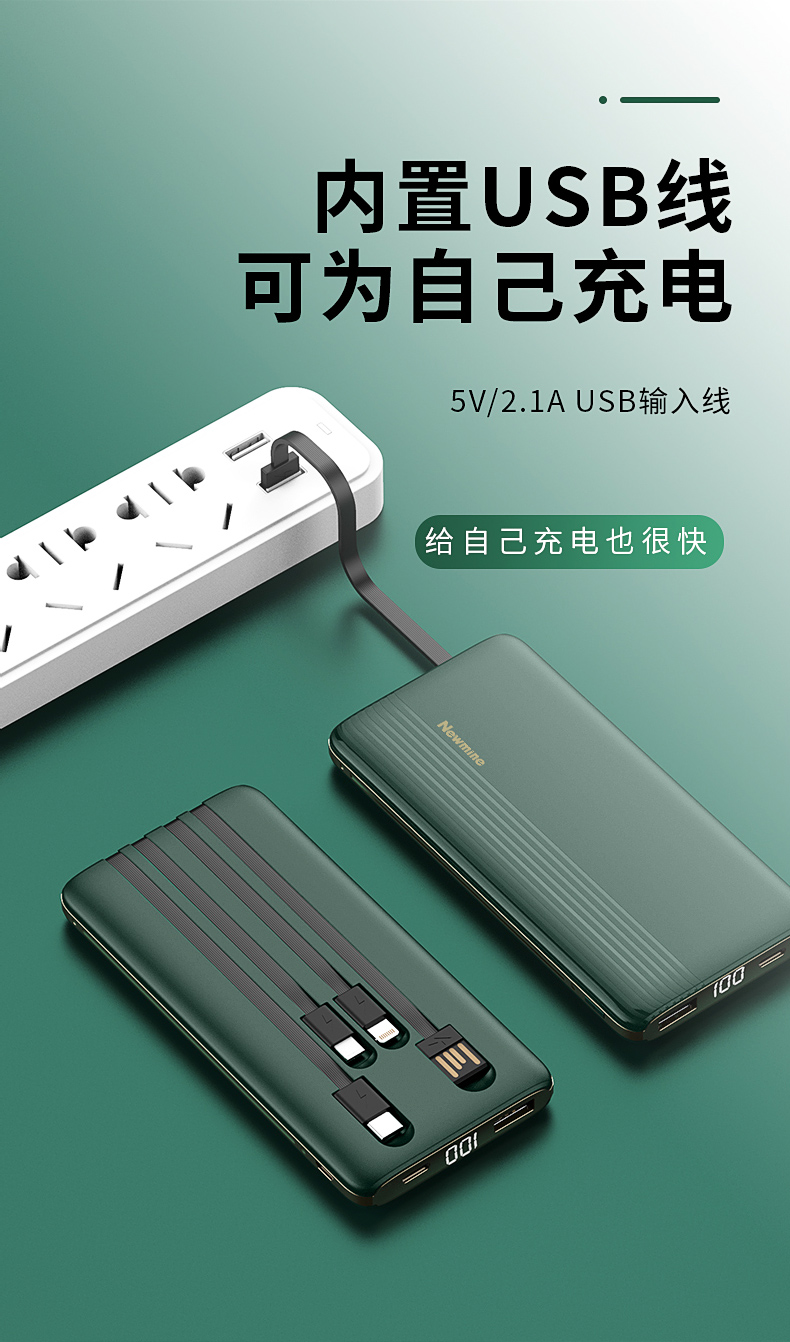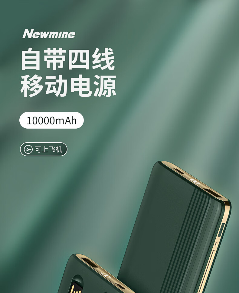 商品名称:纽曼充电宝 10000毫安 AL01 黑色 自带线 数显容量 可上飞机 (15221)