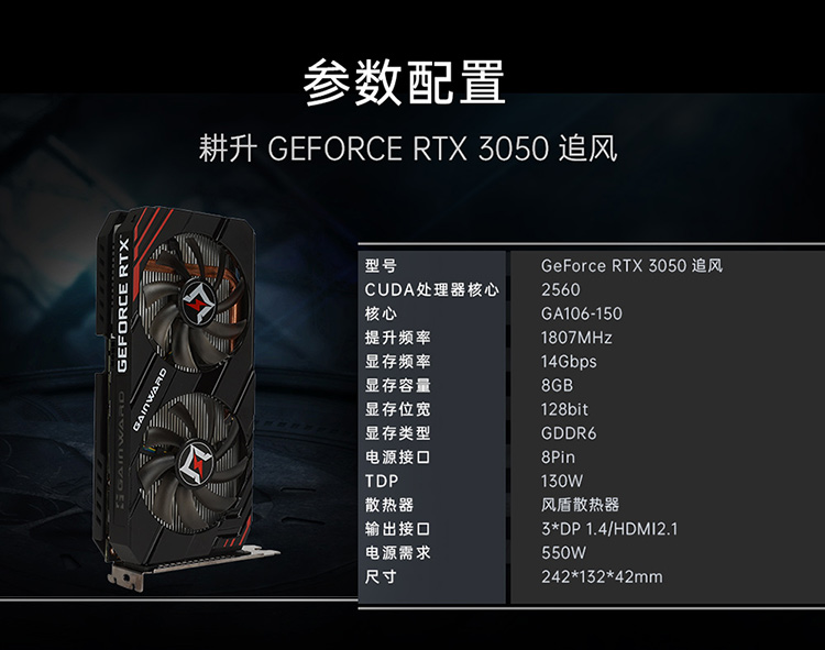 商品名称:耕升显卡 RTX3050 8G 追风 双风扇 DP+HDMI(15038)