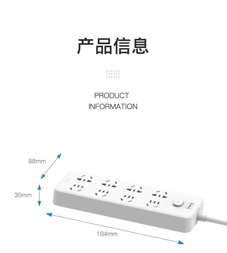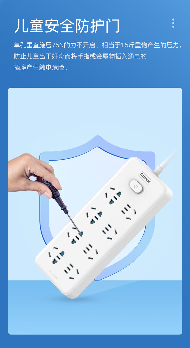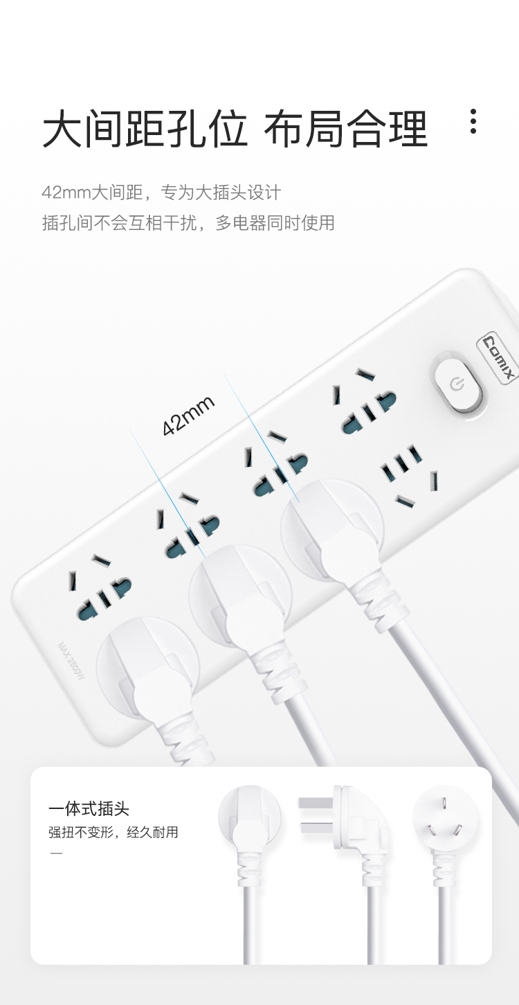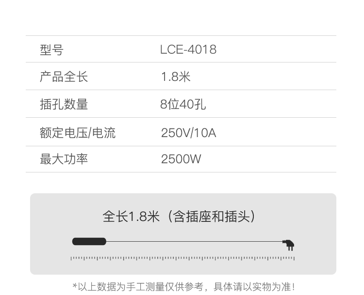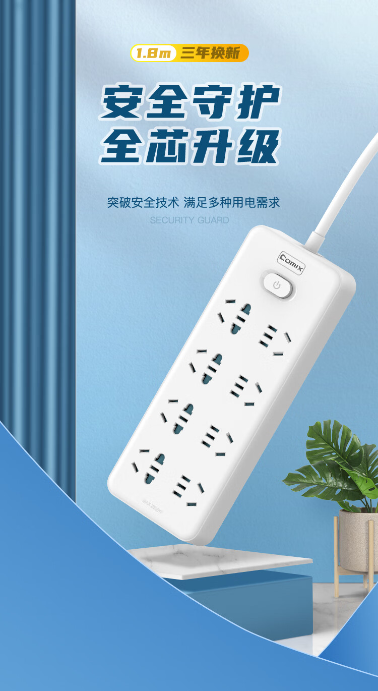 商品名称:齐心 新国标 插座/插线板/接线板 LCE-4018 8位5孔 1.8米 白色/总控 买10个送1个(15263)