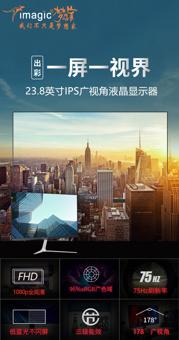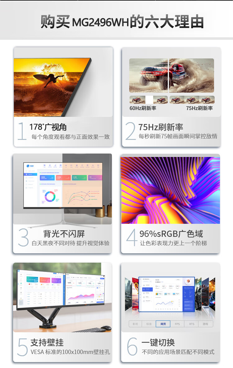 商品名称:梦想家显示器 MG2496WH 23.8寸 IPS 金属无边框 可壁挂HDMI+VGA (15663)