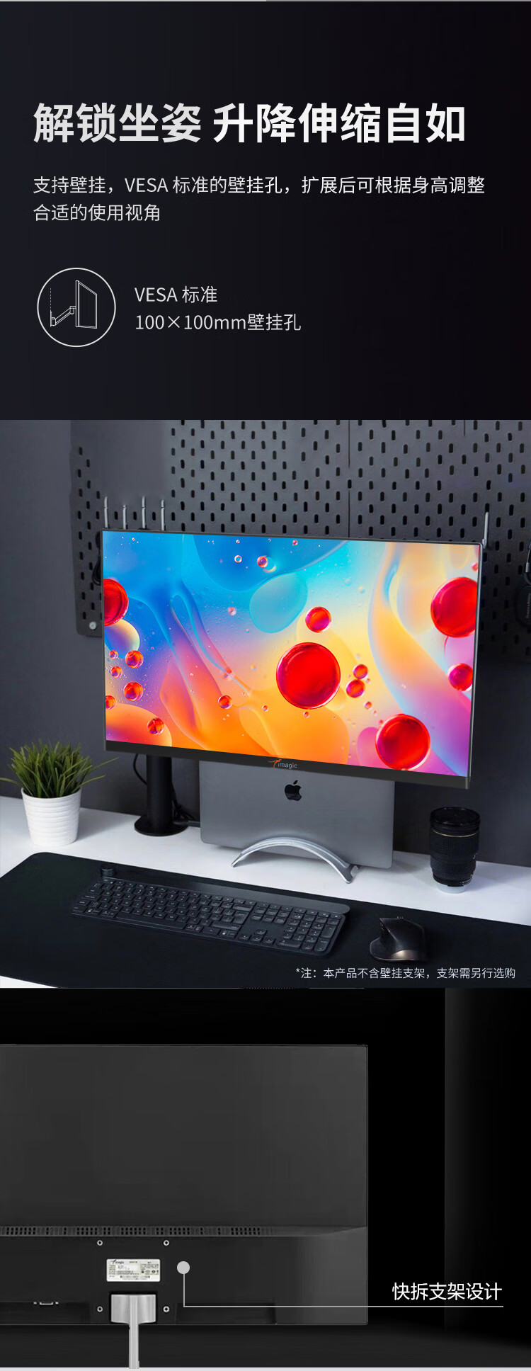 梦想家显示器 MG2496WH 23.8寸 IPS 金属无边框 可壁挂HDMI+VGA (15663)