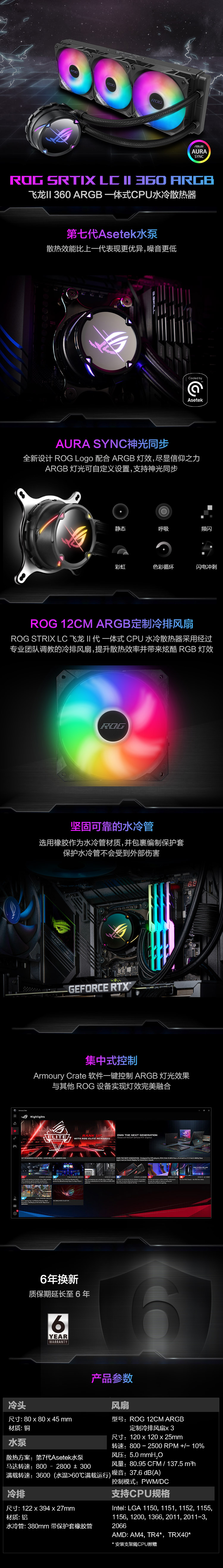 商品名称:华硕一体式水冷 ROG STRIX LC II 360 飞龙二代 ARGB灯效 (14352)