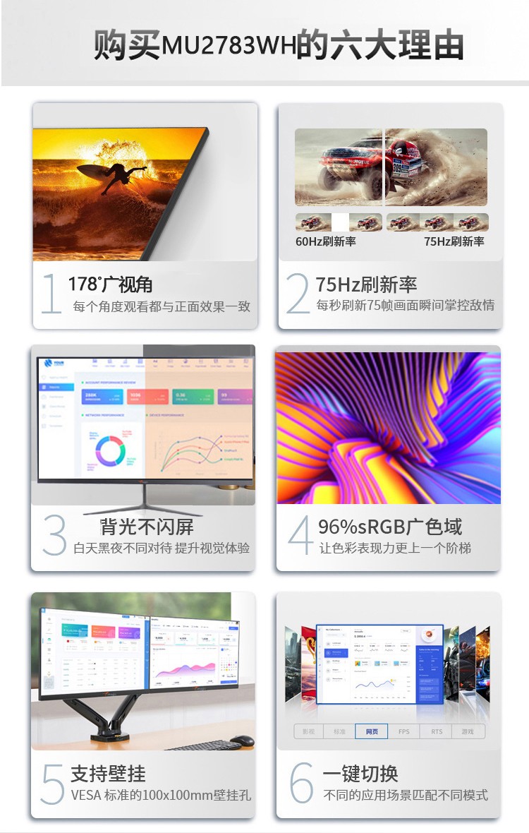 商品名称:梦想家显示器 MU2783WH 白色 27寸 IPS VGA+HDMI 【南京仓发货】(15572)