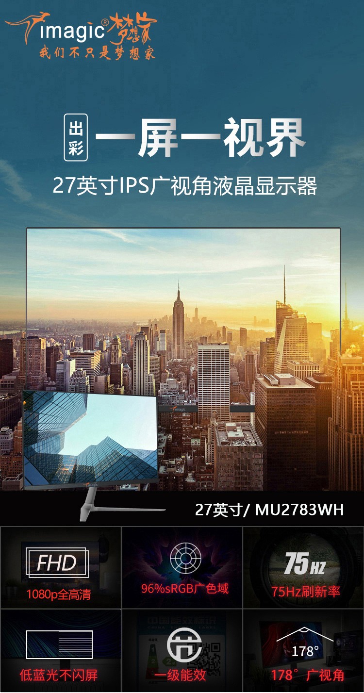 梦想家显示器 MU2783WH 白色 27寸 IPS VGA+HDMI 【南京仓发货】(15572)