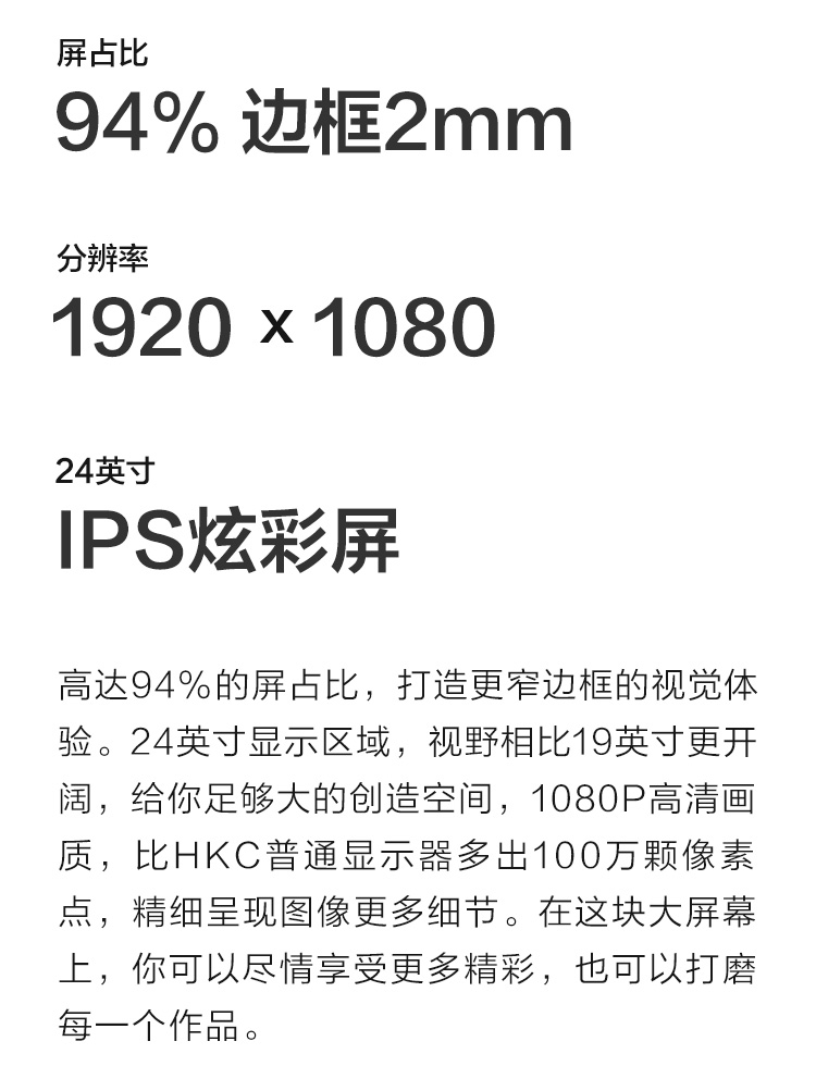 商品名称:HKC显示器 S2416 24寸 微边框 IPS屏 VGA+HDMI (15585)