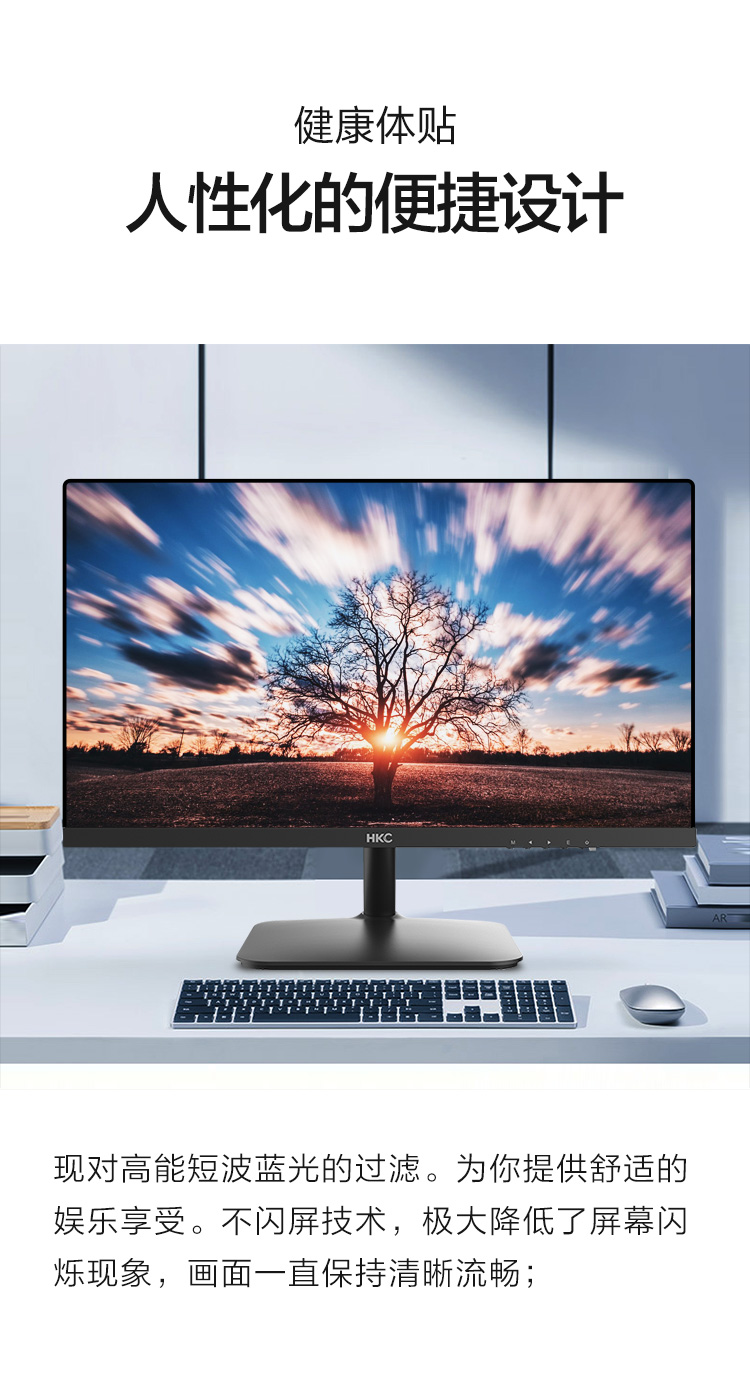 HKC显示器 S2416 24寸 微边框 IPS屏 VGA+HDMI (15585)