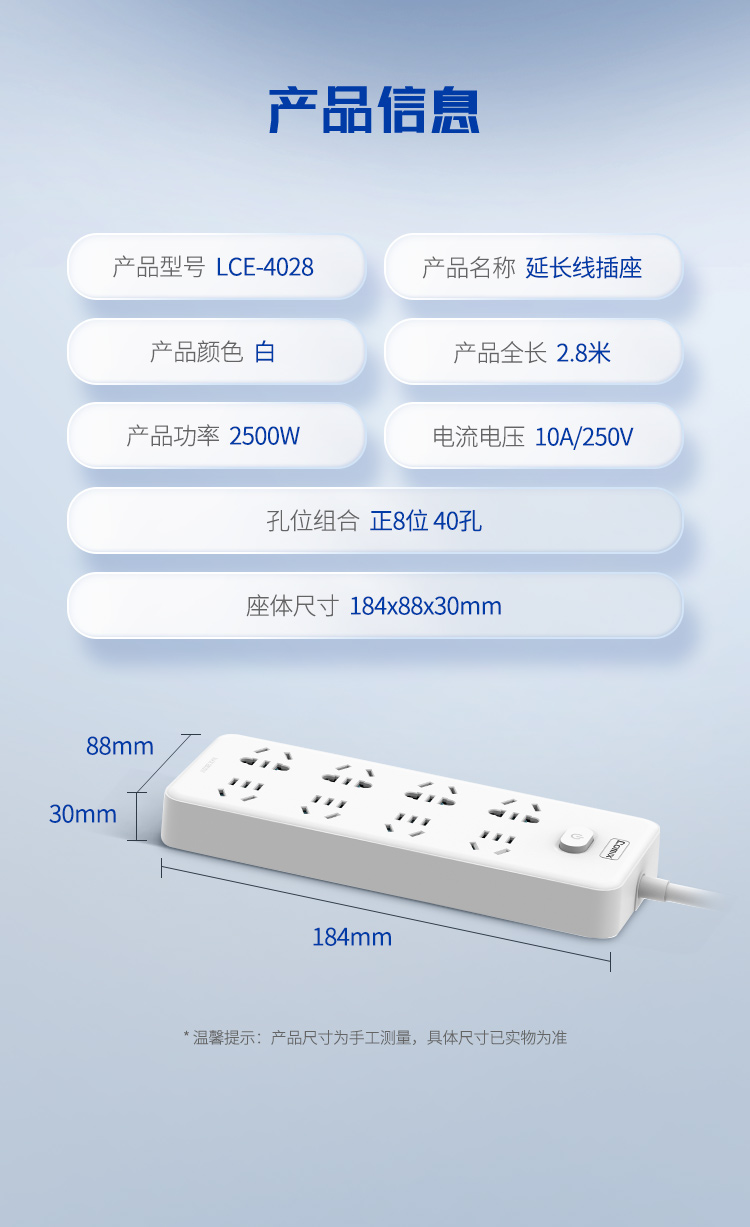 商品名称:齐心 8位5孔 2.8米线长 插座/插线板/接线板 4028 (15845)