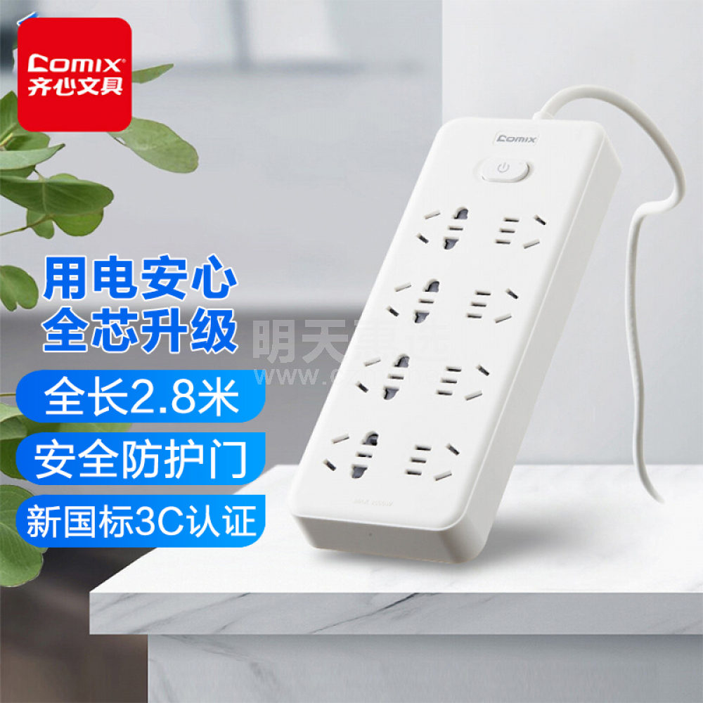 齐心 8位5孔 2.8米线长 插座/插线板/接线板 4028 (15845)