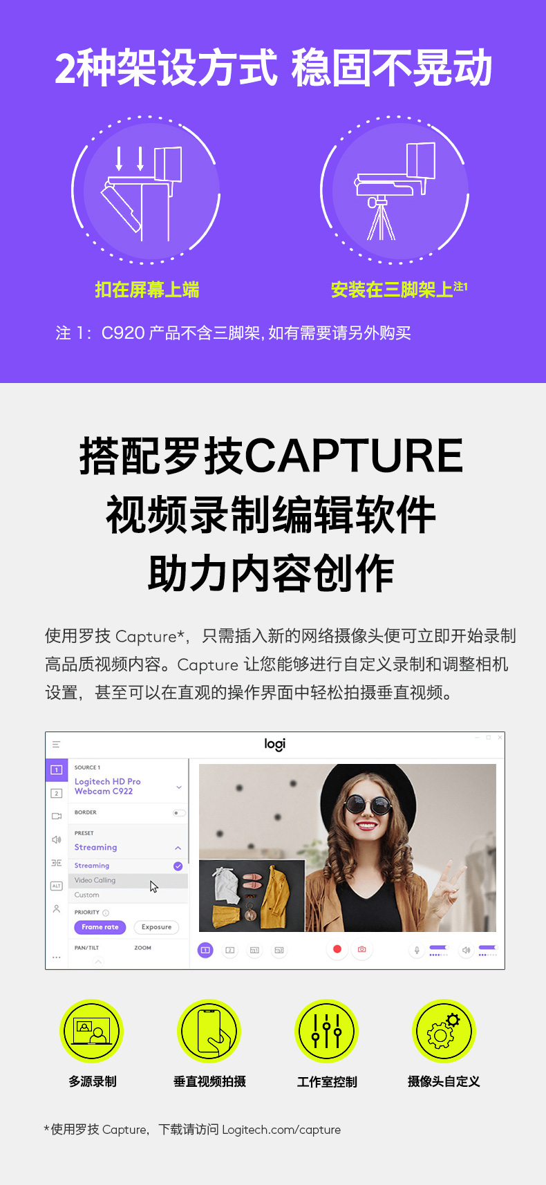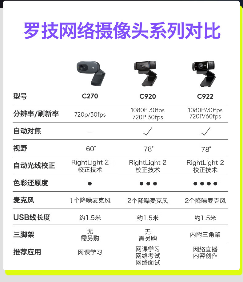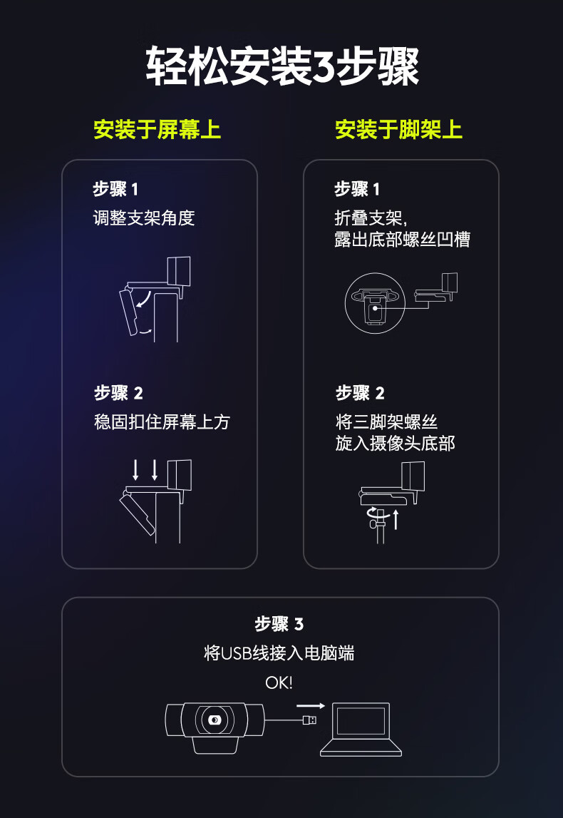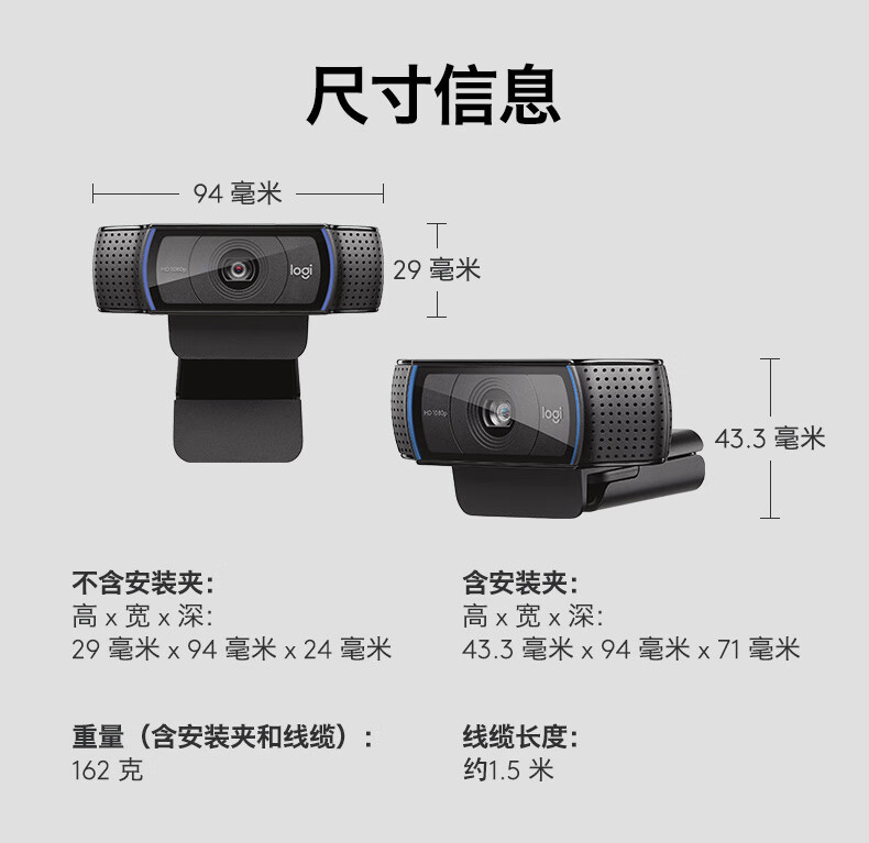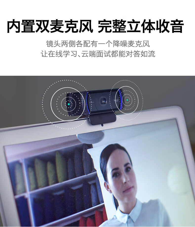 商品名称:罗技 C920 PRO 直播摄像头 1080P高清 30fps 双麦拾音 (16108)