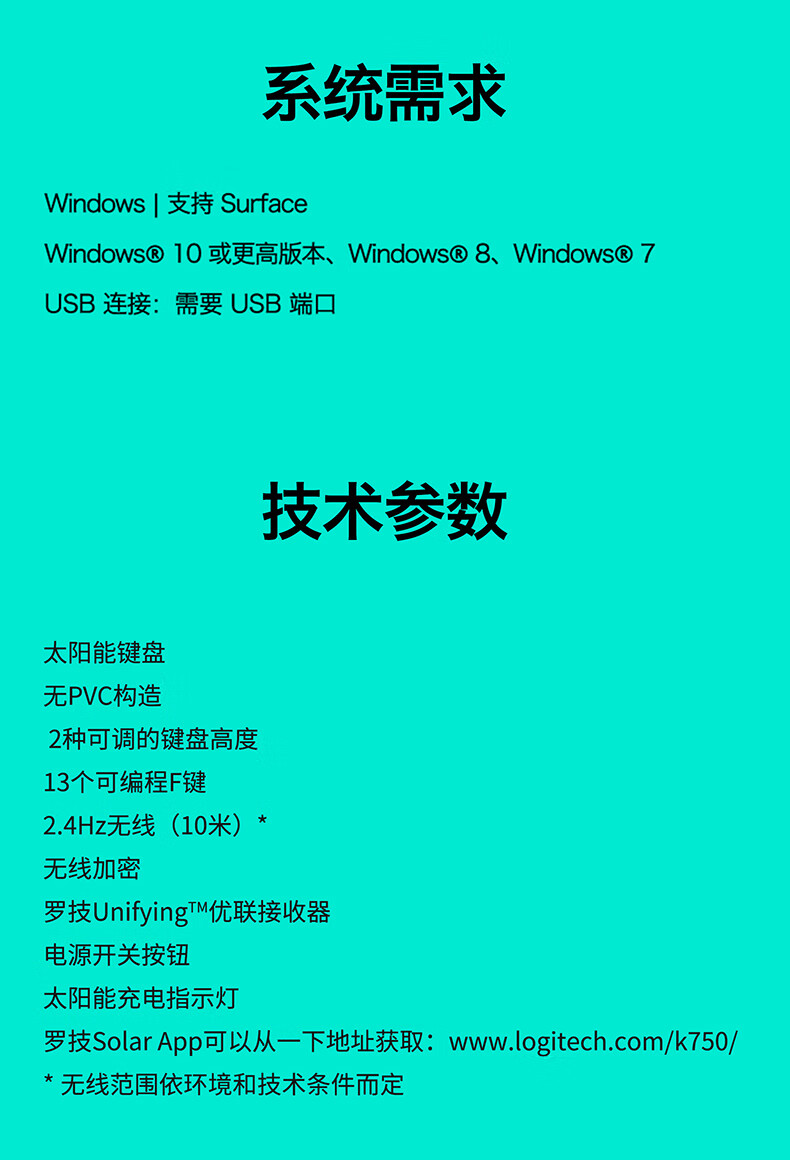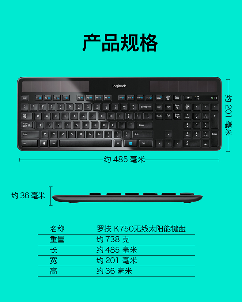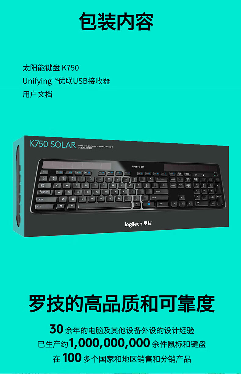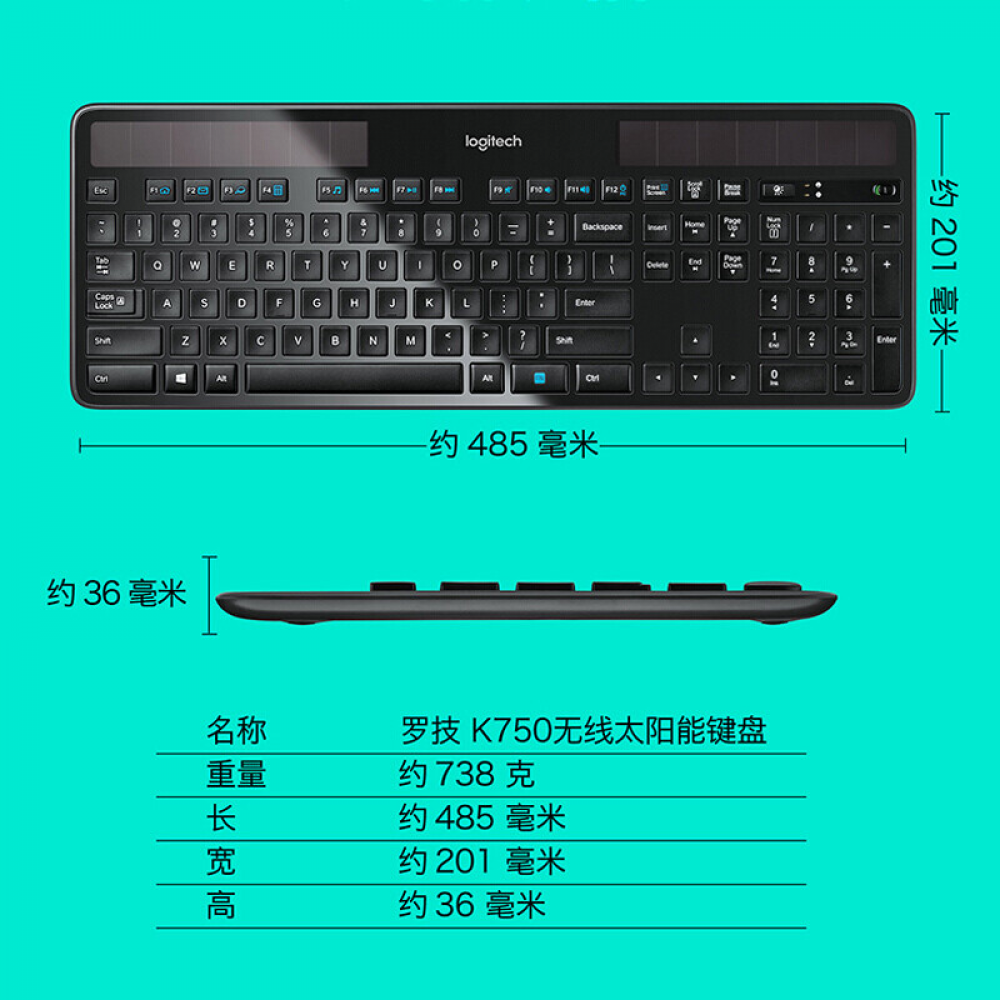 商品名称:罗技 K750 无线单键盘 太阳能供电 超薄便携