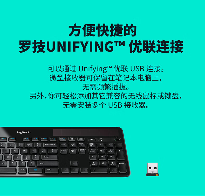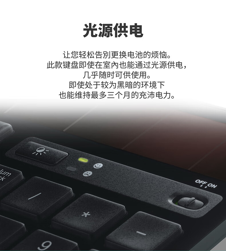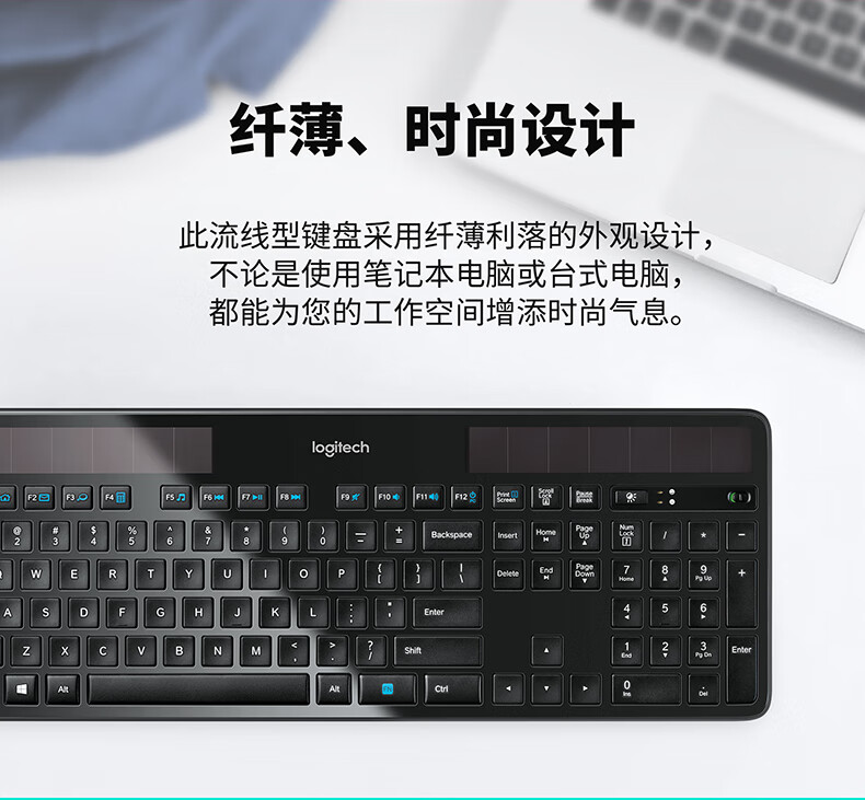罗技 K750 无线单键盘 太阳能供电 超薄便携